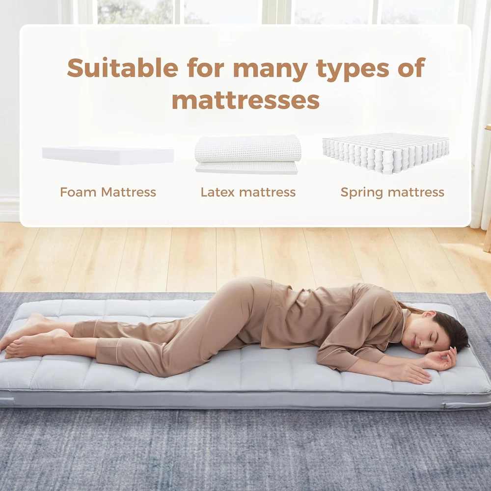 Store New Arrivals Add to Favorite View Feedback Contact 3Inch Twin Mattress Topper Cover(Only Cover),Cot Mattress Protector Bedding,Foam and Latex Mattress Cover with Zipper,Pillow Top and Bottom(75 X 38”) Gray Description Item model number twin Closure Type Zipper Number of Items 5 Color Gray Water Resistance Level Not Water Resistant Product Dimensions 75 x 38 x 3 inches Material Polyester Country of Origin China Fabric Type 100% Polyester Item Weight 5.99 pounds Model Name twin size Age Range (Description) Adult Size Twin Special Feature Pillow Top Product Care Instructions Machine Wash 【DOUBLE-SIDED FILLING DESIGN】This mattress cover’s upper and lower layers are filled with 1000GSM of premium fluffy fiber is suit for 3 Inch foam and latex mattress topper.It can make your mattress softer and more comfortable,just like a futon mattress. 【MULTIFUNCTIONAL COVER】The cover’s fabric is very soft,when you lie on it, you won't have any hard feeling.When you need a temporary pillow for camping, you can fold it up.And you also can use it as a thin blanket to ward off the cold. 【MACHINE WASHABLE】The cover has three side zippers, you can easily put on it,and it can be directly placed in the washing machine for cleaning, without worrying about deformation. After cleaning, drying with a dryer will make it more fluffy. 【SIZE】We provide different sizes cover of memory foam mattress topper: Narrow Twin(75X30X3”),Small Single(72X24X3”),Twin(75X38X3”),after putting in a 3-inch thick mattress , the entire mattress with the cover can be 4-inch thick. 【SERVICE】If you have any problems about our products, please leave us a message anytime. Product Description HOW TO USE THE COVER? Single Mattress Cover MORE SIZE MATTRESS COVER Queen,Full,King Machine Washable Non slip Double side Pillow Top Single side Queen,Full,King Machine Washable Non slip Double side Pillow Top Single side Queen Mattress Cover Queen Mattress Cover ABOUT US We offer the best prices around on high quality products. Our E-store includes media such as books, movies, music and games while offering electronics, toys, sporting apparel, clothing, tools, general home, garden items and more. SHIPPING We are always working hard to ensure your package arrives as soon as possible. Please understand that some factors like weather, high postal traffic, and the performance of shipping companies are outside of our control. We offer free shipping to the lower 48 states and ship within 2 business days of payment, usually sooner. We do not accept P.O. Boxes. Please provide a physical address. For shipping outside of the continental USA, we only use eBay's Global Shipping Program.The item is shipped to KY and then sent to the rest of the world. International customers are responsible for all duties and taxes. Continue to check out in order to calculate costs for shipping the item to your country. Messages regarding eBay's Global Shipping Program MUST be directed at eBay EXCLUSIVELY. RETURNS We offer a 30-Day Return Policy on items which you are not completely satisfied with. You have the option for a full-refund or an exchange of the item. No returns are available on items shipped outside of the USA. PAYMENT We accept PayPal. CONTACT US This page content is yet to come Please ad us to your favorite seller and visit again later Thank You CUSTOMER SATISFACTION We try our very best to make sure every customer is completely satisfied. If there's a problem, message us! We're happy to help. WE ACCEPT Copyright © 2021 AutoDS. | All Rights Reserved