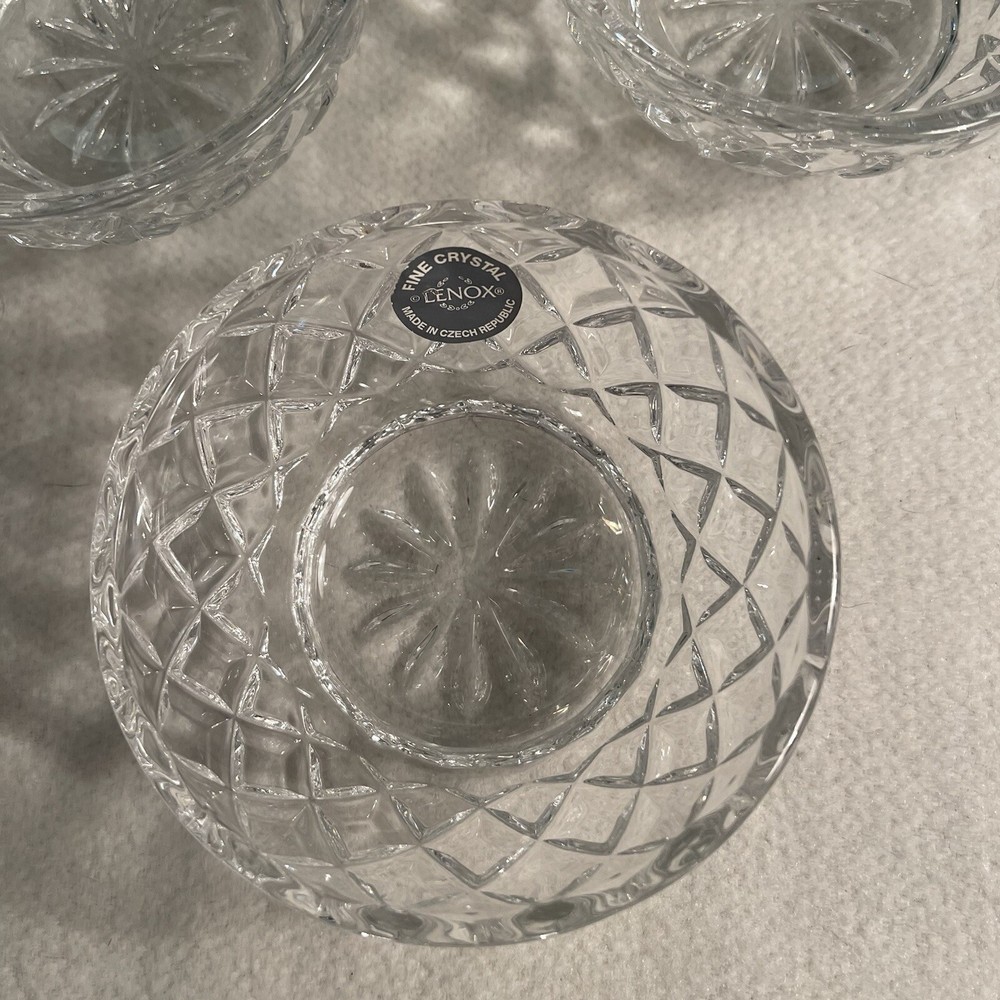 3LENOX Czech Crystal Criss Cross Diamond Dish Bowl 3 x 1.75 Inches New
