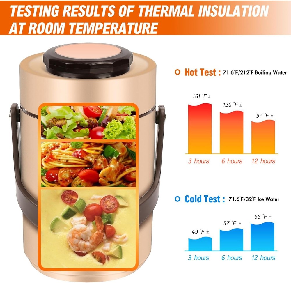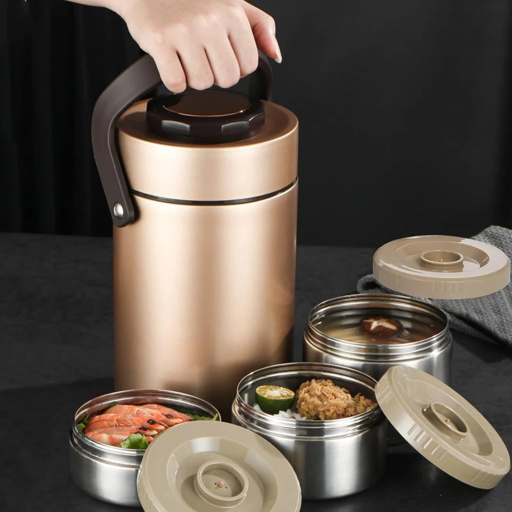 3-Tier Silver Insulated Stackable Thermal Lunch Box Thermos