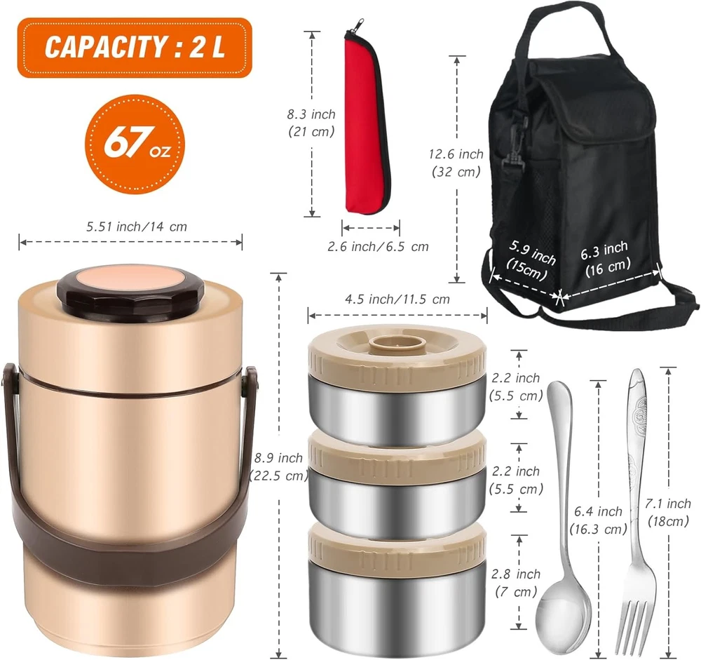 Contact Us Add to Favorite Well come to Store Contact Us Fast Shipping Hassle Free Return eBay Money Back Guarantee Authenticity Guarantee 3-Layer Insulated Lunch Box for Men, Soup Thermos, Adult Leakproof Insulated Hot Food Jar Container, Stainless Steel Thermal Bento Box Lunch Bag Cutlery for Office Construction Worker Trucker Picnic Features color :Gold Material :Stainless Steel, Silicone, Polyvinyl Chloride Age Range (Description): Adult Special Feature :Stackable, Vacuum Insulated Capacity: 4.2 Pounds Theme :Food Product Care Instructions :Dishwasher Safe Included Components: Bag, Cutlery Number of Compartments :3 Item Description Premium & Durable Food Thermos: 304 stainless steel resists dents, odors, and rust over time, and all the lids are made of food grade plastic. The vacuum insulated lunch box is BPA, phthalates lead and PVC free are perfect for your healthy meal plan Large Capacity with 3 Compartment : Pack Burgers, Fries & Shakes Without Mixing Flavors! 3 separate airtight zones keep steak hot , salad crisp, and nuts dry. Meal prep approved by Texas fitness coaches! 67oz mega-capacity enables you to pack various food for work, picnic or camping No More Leakage: 100% Leakproof hot food container with 360° silicone seals lock in soups/smoothies even upside down. Pressure-release valves designed for high-altitude truckers Insulated Lunch Thermos: Double wall thermal insulation technology and the insulated lunch bag that keep hot and cold for up to 6 hours. No microwave or fridge necessary! For better effect, please pour hot/ice water in the storage jar to preheat or precool for 3 mins before putting food in it Ultimate Blue Collar Bundle: Get 4 premium containers + insulated bag + camping cutlery set. Ideal for nurses, welders, truck drivers, office and construction workers. Warning: Not intended for use by children 12 and under About us Customer service is our top priority! Please be sure to read the description thoroughly to make sure that this is the item you want before making a purchasing decision. If you have any questions about this item, please contact us via eBay messages before placing your order. We make every effort possible to accurately describe and depict the items. Please be aware that slight variations in color may be due to differences in lighting and computer monitor resolutions. All items are in stock at the time of listing; however, in the unlikely and unforeseen event that we are unable to fulfill your order through any of our networked warehouses, we will notify you as quickly as possible and offer you a 100% refund on your purchase. Thank you for shopping with us. We appreciate your business! Payment PayPal is our preferred method of payment. If you do not have a PayPal account, all major credit cards are gladly accepted through PayPal as the payment processor. PayPal offers great buyer and seller protection. Your order will be processed pending receipt of cleared payment through PayPal. Sales tax may be charged depending on your location. Shipping We provide fast, free shipping. Most items are shipped within 3-10 business days of receiving cleared payment. We ship to the lower 48 contiguous United States only. We do not ship to P.O. Boxes or APOs. For select items, we ship internationally through eBay?s Global Shipping Program. We do ship most of our smaller items internationally using eBays Global Shipping Program. If ordering electrical items outside of the U.S., please note that they will come equipped with a standard U.S. voltage plugs. You will need a suitable adapter to use the item in your country. Certain restrictions apply. Standard or Economy Shipping is ALWAYS FREE! You will be notified via eBay messages as soon as your items ship. Special Notice for Freight Items: If an item ships via Freight (Truck) Delivery, a valid phone number will be required so that we can contact you to schedule delivery. The item may be delivered with curbside delivery. An adult signature will be required. Please be sure to have available help on hand to assist you with moving the item to the desired location in or outside of your home. Freight items must be inspected upon delivery. In the unlikely event that damaged is observed, you MUST refuse delivery and note the damage on the shipping receipt and send it back via the Freight carrier. Returns will not be accepted on Freight items after they have been delivered, inspected, and the driver has left the premises. Returns We offer a 30 day return/exchange policy for most of our products. You can request a refund if you are dissatisfied for any reason with your product. (Restocking Fee May Apply). Only factory defects are accepted as a reason for a return. In the case of factory defects, if available, we will replace the product for you. When returning an item, it must be in all of the original packaging and include all of the original accessories or items that came with it. The item and package should be in original and perfect condition. You will be required to cover shipping on the return of non-defective items. All returns MUST be done within 30 days of date of purchase. Please note that we cannot give refunds or replacements after the 30 day limit has expired. When sending in a return, please note that it can take up to 7 business days for the return to be processed. We do our best to process as quickly as possible. We are extremely fair, and in the rare event of something out of the ordinary happening with our products or shipping, we will gladly work with you to find a fair resolution. Disclaimer Were sorry, but we do not honor product exchange requests. If you need to exchange an item received, you will need to go through the normal returns process identified in our returns section and then order the correct item, if it is still available. Orders are processed immediately and dispatched to fulfillment as soon as they are received. For this reason, we are typically unable to honor cancellation requests. If yo