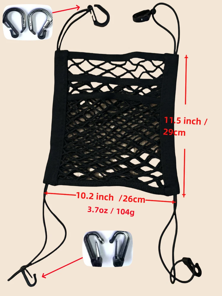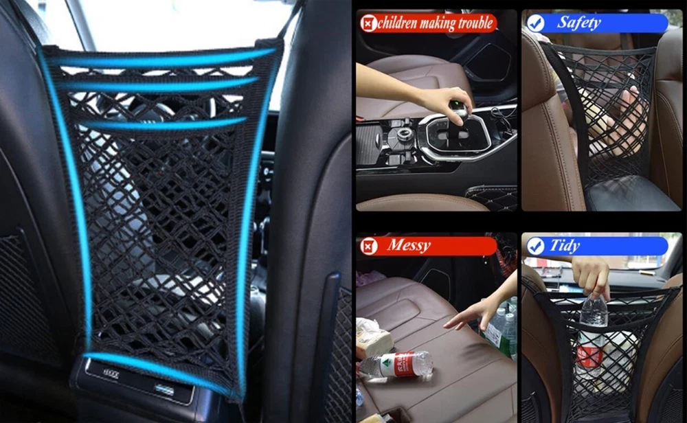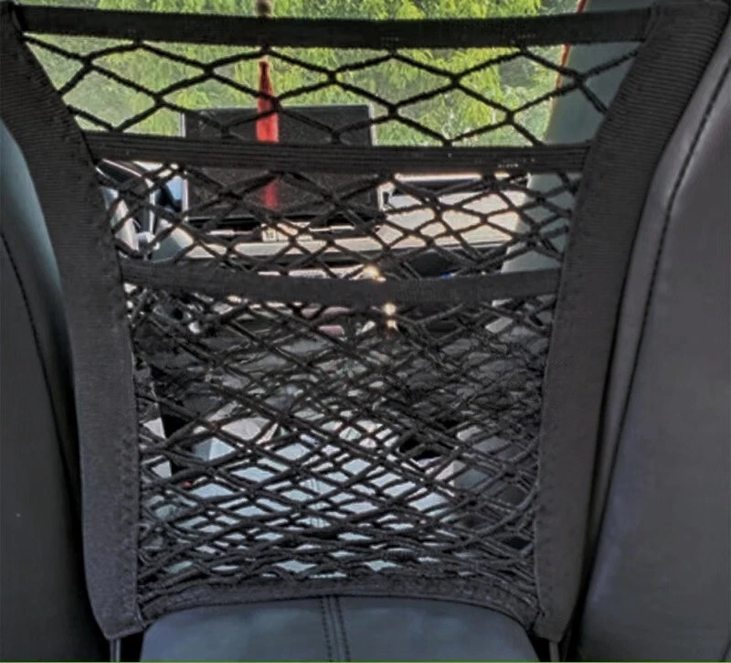 - Universal for Most Cars : Suitable for a variety of vehicle types, especially those with small front seat pitch such as cars, small and medium sized SUVs. For those with large front seat pitch, it also fits for placing at the back of seats to facilitate rear passengers to place items. - Storage Organizer : A simple item for keeping your car interior tidy and clutter-free, not messy any longer. Easy to store and fetch your personal belongs. - Premium Material : Maintain high elasticity, this mesh organizer can extends as needed. Not easy to deform or damaged, durable for a long-term use. - Large Capacity : Measures 10.2 by 11.5 inches and up to larger after stretch. The three-layer design makes the storage space lager and you can store purse, facial tissues, water bottles and more. - Kids, Pets Barrier : As a backseat barrier, prevents kids and pets disturbing your drives to keep the rides comfortable and safe.