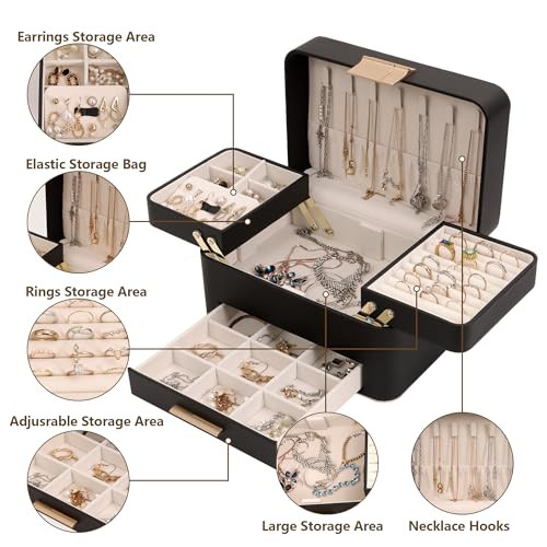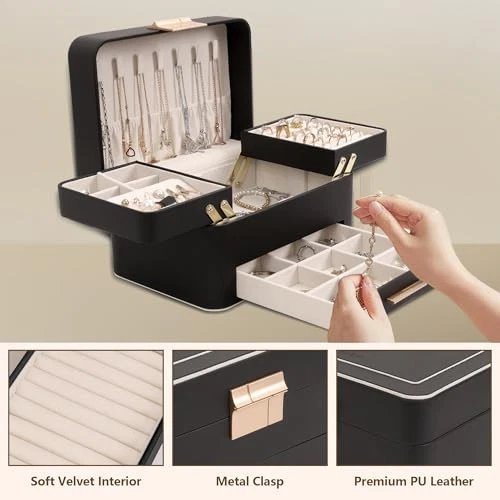 3-Layer Jewelry Box Organizer with Drawers for Women