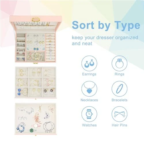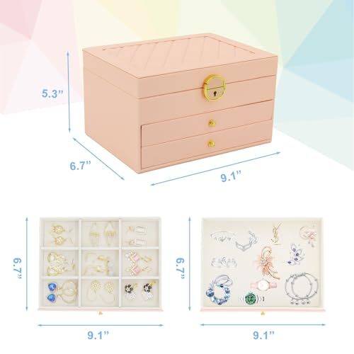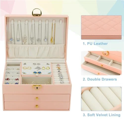 3-Layer Pink Jewelry Organizer Box for Women’s Storage Needs