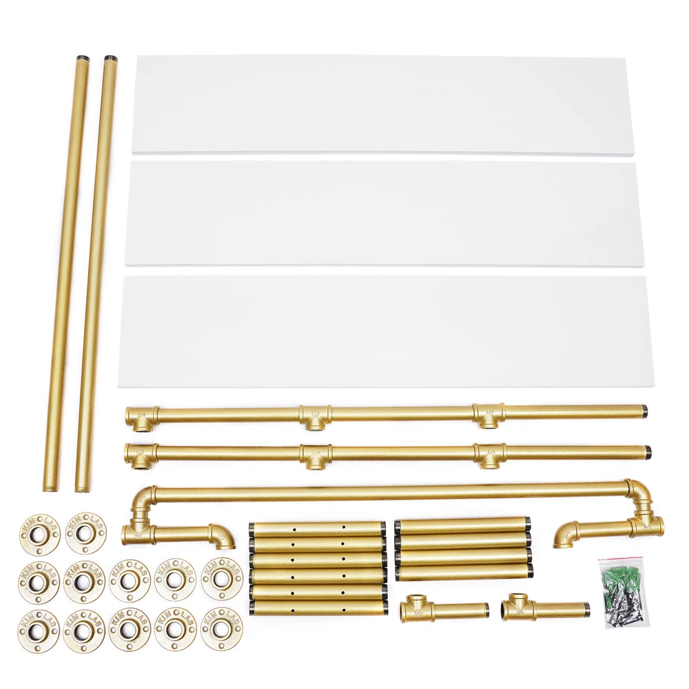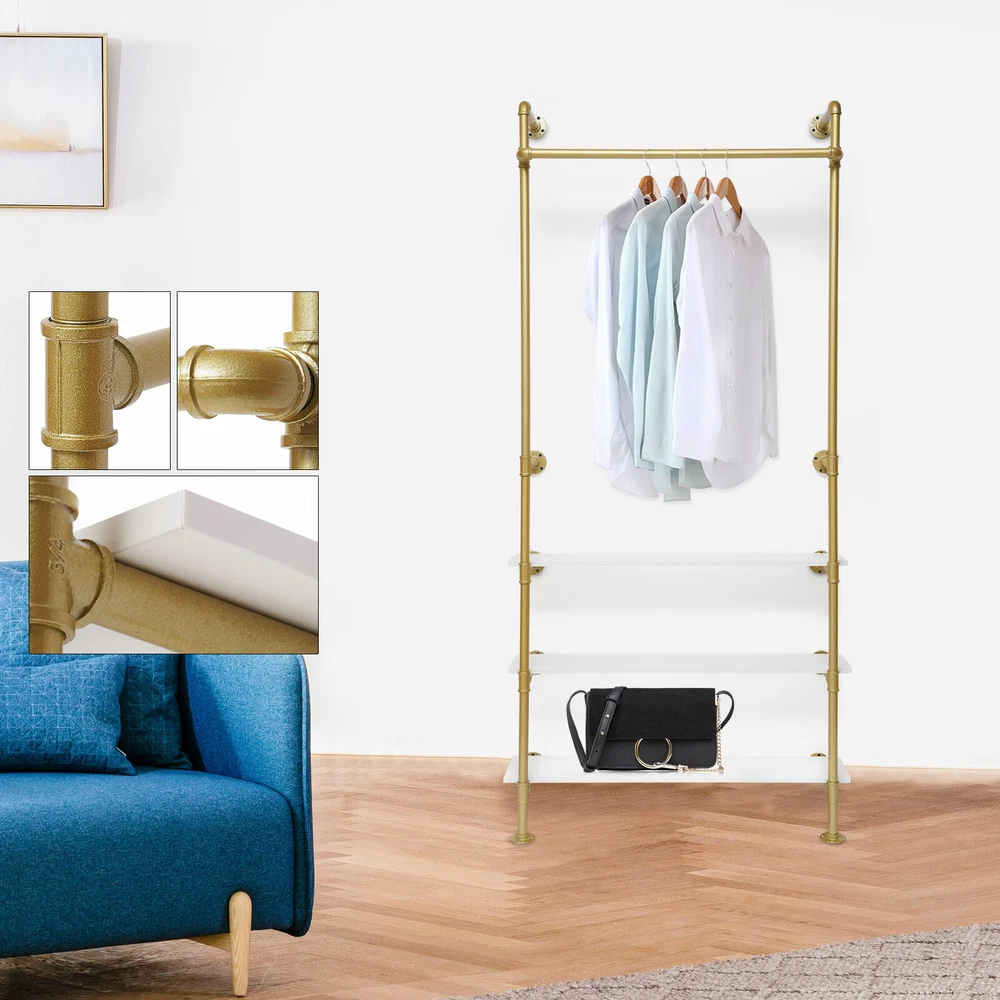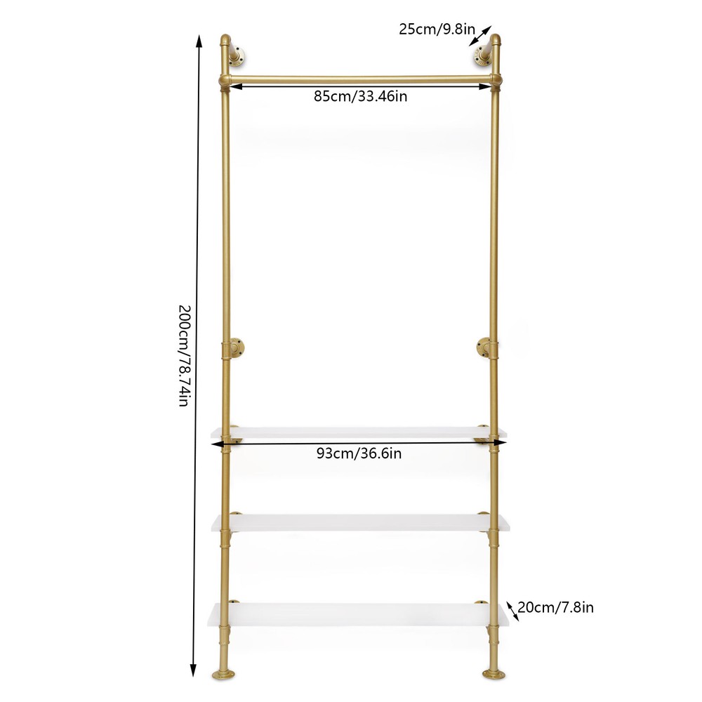 3-Layer Clothes Rack Wall Mounted Garment Rack Stand Clothing Store Organiser 3-Layer Shelves Gold Clothes Display Stand Hanging Wardrobe Storage Organiser Description: Premium Material: The Clothes Rack Is Made Of High Quality Iron Pipes And Wood Board, Which Is Durable And Sturdy, Having a Strong Bearing Capacity. 3-Layer Shelves Design Adds Storing Space On The Wall. Saving Space: This Garment Rack Provides Large Storage Space While Making Your Room Neatly. Clothes Display Stand Can Hold Your Shoes, Hats, Bags, Clothes, Toys And Flower Pot. Retro Industrial Style: This Closet Rack Features The Cool Industrial And Vintage Looking, Try To Add Industrial Vintage Style To Your Home, Which Is Really Cool And Eye-Catching. Easy To Install: This Clothing Rack Can Be Installed On a Flat Wall Including Concrete, Tiled Walls Or Other Types Of Walls. Comes With Installation Drawings To Help You Quickly Assemble. Wide Application: This Clothes Rack With Shelves Is Suitable For Clothing Retail Store, Home, Workroom, Or Dance Room. Perfect For Hallway, Entryway, Bedroom, Closet, Laundry Room Or Balcony. Specification: Product: Clothes Rack Color: Gold Material: Iron, Wood Size: 85x25x200 cm/33.46x9.8x78.74 inch; Shelf: 93x20 cm/36.6x7.8 inch Weight: 10 kg/22.05 lb Product Usage: Suitable For Clothes Storage, Home Decoration Style: Industrial Vintage Style Application: Suitable For Hallway, Entryway, Bedroom, Closet, Laundry Room, Clothing Store Or Balcony Notice: Due To Manual Measurement, There May Be Slight Differences In Size. Colors May Vary Slightly Due To Screen And Lighting Differences. Package Includes: 1 * Clothes Rack Payment Delivery details Terms of sales About us Contact us Payment We accept ebay payment 。 Fees such as import duties, taxes are not included in the item price or shipping costs. These charges are the buyer's responsibility. Delivery details Shipping: 2-9 working days to: USA Terms of sales We maintain high standards of excellence and strive for hundred percent customer satisfaction. Feedback is very important to us. We hope that you contact us immediately before you give neutral or negative feedback, so that we can address your concerns. It is impossible to address issues if we do not know about them! About us Your satis faction is our ultimate goal. We work hard to earn your trust and future business. Our certified technicians have tested each item before shipping. The unit comes with 1 year limited warranty on all manufacturing defects. a) If you receive a defective item, you may return it or ask for a discount. Please contact us within 14 days after you receive the package. b) What you returned must be intact and in its original packaging as re? u. Customer is responsible for shipping costs of the returned item. c) We will cover the cost of shipping back t with the shipping rate indicated in the registration page. We will send you a new unit or refund the full payment you paid. Thank you. Contact us Business Hour Business Hour: Monday To Friday: 8:30 AM to 5:00 PM (Beijing China time) Due to time zones, our reply to your questions may not be immediately. But within above working time, we will reply your email within 24 hours. If it's non-workdays, please kindly be patient and wait till Monday. Please contact us with ebay message. Please feel free to contact us if you have any questions. Monday To Friday: 8:30 AM to 5:00 PM (Beijing China time) Due to time zones, our reply to your questions may not be immediately. But within above working time, we will reply your email within 24 hours. If it's non-workdays, please kindly be patient and wait till Monday. Please contact us with ebay message. Please feel free to contact us if you have any questions. Brand TBvechi 1.Features` Easy installation,Compact Design Material high quality material Feature Creative Design,Durable Material,Beautiful Appearance Item Height 200 cm Item Length 85 cm Item Width 25cm Type Clothes Rack Mounting Wall Mounted Features N/A Number of Shelves 3 Assembly Required Yes Model N/A Item Weight 10 kg/22.05 lb Number of Items in Set N/A Item Depth N/A MPN N/A Color Gold Style Industrial Vintage Style Size 85x25x200 cm/33.46x9.8x78.74 inch Shelf Size 93x20 cm/36.6x7.8 inch Product Usage Suitable For Clothes Storage, Home Decoration Note Can't not ship to Puerto Rico,Alaska/Hawaii UPC N/A