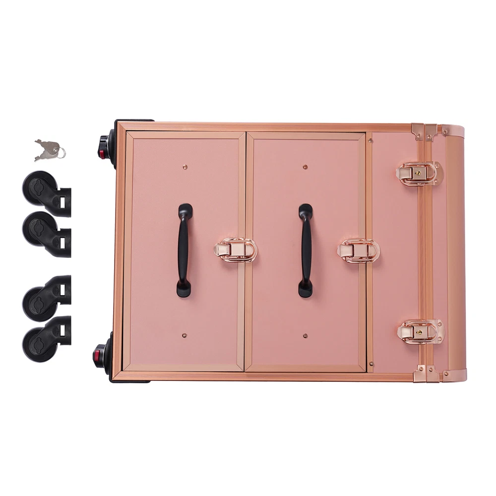 Description This is a movable multi-layered makeup case designed for professional beauty artists to make up anytime and anywhere. This rolling makeup case is constructed of high-quality aluminum alloy that is sturdy and durable. It has extra large capacity compartments and multi-layer drawers. This case is ideal for all people who love beauty or nail art. Key Features High-quality Materials: The frame of the makeup case is wrapped with high-quality aluminum alloy, which will not easily rust and fade. And the thicker, all-aluminum drawbar makes the case more stable, refusing to shake. Large Capacity: This makeup case has 3 layers, the top layer can store nail polish or lipstick; the bottom two drawers can store full-size cosmetics and beauty appliances, such as perms, manicure mac 3-Layers Travel Rolling Makeup Train Case Cosmetic Makeup Organizer Storage Bag Description This is a movable multi-layered makeup case designed for professional beauty artists to make up anytime and anywhere. This rolling makeup case is constructed of high-quality aluminum alloy that is sturdy and durable. It has extra large capacity compartments and multi-layer drawers. This case is ideal for all people who love beauty or nail art. Key Features High-quality Materials: The frame of the makeup case is wrapped with high-quality aluminum alloy, which will not easily rust and fade. And the thicker, all-aluminum drawbar makes the case more stable, refusing to shake. Large Capacity: This makeup case has 3 layers, the top layer can store nail polish or lipstick; the bottom two drawers can store full-size cosmetics and beauty appliances, such as perms, manicure machines and light therapy supplies. This multifunctional product can meet your storage needs. Excellent Weight-bearing Capacity: The rectangular construction and aluminum alloy frame give the case a superb load-bearing capacity (up to 110.3 lbs). You can safely put all your hair and beauty tools on it. Sorted Storage: Beauty products with different functions and sizes are stored in the corresponding drawer and compartment, making the tools ranged orderly, so it is convenient for you to quickly find the tools you want. Easy to Move and Carry: The universal wheels are easy to move and very convenient, especially for nail salons and beauty salons that have a lot of tools and need to move frequently. And it comes with a telescopic pull bar ( maximum length is 32.7inchs ) and a top handle, which is easy to carry on trips and business trips. Stylish Appearance: This rolling make-up case gives a stylish and exquisite look with its simple construc tion and stylish gold . Such a retro make-up case will decorate your dressing room well and make a good impression when you are working outside. Secure & Reliable: The metal locks of the case protect the contents securely and the lockable design ensures security and privacy. Worry-free Service: We have been working hard to provide better service and quality for our customers, which is our goal. If there is any quality problem with our products. Please contact us in time. Details Transparent Storage Bag: The transparent storage bag on the inside of the lid allows for wet and dry storage, for example, you can store wet beauty eggs and powder puffs to avoid cross-contamination. Rounded Edges: The top of the cosmetic case has been designed with rounded corners rather than sharp edges to avoid scuffing. Reinforced Lock: Reinforced lock not only makes it convenient for you to open and close, but also does not affect the appearance, and solves the embarrassment of bursting when going out. Application This rolling make-up case is suitable for professional make-up artists, hairdressers, nail technicians, and beauticians in beauty centers, salons, private homes, parties, and other occasions. Specification Number of Layers: 3 Color: Rose Gold Material: Aluminum Alloy Frame and Plastic Fireproof Board Panel Shape: Rectangular Processing Method: Frosted Rolling Wheel Style: Universal Wheel Carrying Parts: Retractable Handle Gross Weight: 9kg/ 19.8lbs Net Weight: 7.5kg/16.5lbs Package Size: 57*42*32cm/22.4*16.5*12.6inch Product Size: 36*23*58cm/14.2*9.1*22.8in Maximum Load: 50kg/110.3lbs Package Included 1 x Makeup Case 4 x Universal Wheels 2 x Keys Notes Please allow the slight color difference caused by the shooting light and 1-3cm error due to manual measurement, and make sure you do not mind before you order. Payment Delivery details Terms of sales About us Contact us Payment We accept ebay payment 。 Fees such as import duties, taxes are not included in the item price or shipping costs. These charges are the buyer's responsibility. Delivery details Shipping: 2-9 working days to: USA Terms of sales We maintain high standards of excellence and strive for hundred percent customer satisfaction. Feedback is very important to us. We hope that you contact us immediately before you give neutral or negative feedback, so that we can address your concerns. It is impossible to address issues if we do not know about them! About us Your satis faction is our ultimate goal. We work hard to earn your trust and future business. Our certified technicians have tested each item before shipping. The unit comes with 1 year limited warranty on all manufacturing defects. a) If you receive a defective item, you may return it or ask for a discount. Please contact us within 14 days after you receive the package. b) What you returned must be intact and in its original packaging as re? u. Customer is responsible for shipping costs of the returned item. c) We will cover the cost of shipping back t with the shipping rate indicated in the registration page. We will send you a new unit or refund the full payment you paid. Thank you. Contact us Business Hour Business Hour: Monday To Friday: 8:30 AM to 5:00 PM (Beijing China time) Due to time zones, our reply to your questions may not be immediately. But within above working time, we will reply your email within 24 hou