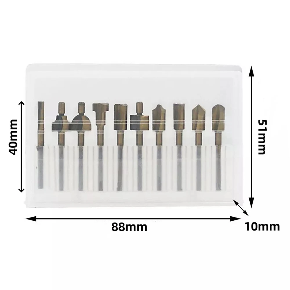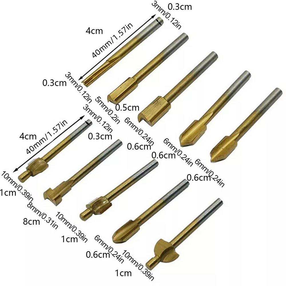 You may also like 8 IN 1 Metal Craft Chinese Ring Puzzle IQ Brain Teaser Kid Adult Educational Toy 10.99 USD 4Pack Durable Fuel Line Tube Hose For Husqvarna 61 66 162 181 266 268 272 281 9.99 USD Pneumatic Foot Pedal Valve FV-320 Momentary 3 Way 2 Position 1/4"PT Threaded 23.99 USD 5V 4-Pin Sunglasses USB Charger Charging Cable For Bose Frames Alto/Rondo/Tenor 11.99 USD 10x Hall Effect Joystick 3D Analog Stick Module For PS5 Dualsense Controller 17.59 USD 3.69 USD 10Pack Plastic+HSS 360° Deburring Tool Steel HSS Rotary Deburr Trimming Handle 10.69 USD Product Description Features: These cutters are made from high speed steel for high hardness and long service life. Surface is coated with titanium for anti-oxidation and makes these cutters more durable. Large capacity chip groove and sharp cutting edge would improve working efficiency and product quality. A wide range of materials can be engraved, including: copper, aluminum, other soft metal, ABS, acrylic, PVC, nylon, resin, most plastics, woods, fibre glass, etc. Ten cutters in different shapes and sizes, usually used on electric trimmers for wood trimming, milling and other processing. Specifications: Type: HSS Router Bits Material: High speed steel Surface treatment :Titanium coated Shank Diameter: 3mm(about 1/8") Length: Approx. 40mm(1.57") Color: As picture show Quantity:10pcs Package Included: 10 x Router Bits Shipping Returns Contact Us Payment 1. Items sent from US warehouse. 2. Receiving time = Processing time + Shipping time. 3. Processing Time: Around 1-2 business Days. 4. Shipping Time: 3-5 business day. It may have a little delay during some holiday (such as Christmas), any problem, please feel free to contact. Always believe we can figure things out with communication, if it comes to return, the pacakge must be intact and the same as you receive. If you have any questions, please feel free to email our service specialists 24 Hours a Day, 7 Days a Week. We will reply you ASAP. Return/refund is accepted within 30 days after the buyer receives the item. NO exchange will be accepted after 30 days from the date when the item is received. Please contact us first before returning your product!!! If you have any questions, our Customer Service staffs welcome you to email us. We strive to answer all questions and resolve any problems as quickly as possible. We care about our valued customers, and will always try to help you. So if you have any problems, You can contact us 7*24, we will reply at the first time. We accept all verified payments from ebay. Orders will be shipped after receiving cleared payment. Shipping 1. Items sent from US warehouse. 2. Receiving time = Processing time + Shipping time. 3. Processing Time: Around 1-2 business Days. 4. Shipping Time: 3-5 business day. It may have a little delay during some holiday (such as Christmas), any problem, please feel free to contact. Returns Always believe we can figure things out with communication, if it comes to return, the pacakge must be intact and the same as you receive. If you have any questions, please feel free to email our service specialists 24 Hours a Day, 7 Days a Week. We will reply you ASAP. Return/refund is accepted within 30 days after the buyer receives the item. NO exchange will be accepted after 30 days from the date when the item is received. Please contact us first before returning your product!!! Contact Us If you have any questions, our Customer Service staffs welcome you to email us. We strive to answer all questions and resolve any problems as quickly as possible. We care about our valued customers, and will always try to help you. So if you have any problems, You can contact us 7*24, we will reply at the first time. Payment We accept all verified payments from ebay. Orders will be shipped after receiving cleared payment. 40 Meter Diving Waterproof Camera Cover Accessories For DJI OSMO POCKET 3 25.99 USD 8.69 USD Red Reciprocating Sanding Polisher Hobby Craft Tool for Gundam/Military Model 59.99 USD Electric Guitar Neck Plate w/ Mounting Screws for Fender Stratocaster Telecaster 10.99 USD 10~120mm Adjustive Steel Pro DSLR Camera Lens Spanner Wrench Opening Repair Tool 19.99 USD 4pcs30/45/60° Deep Cut Blade w/Housing Holder for Cricut Explore For leather 13.99 USD Steel 2.0MM Y Type Triwing Screwdriver For Oris Divers Watch Repairing Tools 23.99 USD TV Remote Control Controller for Bose Solo 5 TV Soundbar 535 AUX1 18.99 USD 1:72 WWII German ME-262 Jet Fighter Aircraft Diecast Military Model Collection 33.99 USD 2Pcs/lot 3-Button Keyless Entry Remote For Chevrolet For GMC Yukon/Sierra 0307 18.99 USD Belt Back Clip Threaded Slide Cover Replacement for Glocks Models 17 19 22 23 24 14.69 USD Sports Camera Storage Bag Carrying Case Handbag For DJI OSMO POCKET3 Accessories 9.99 USD 8.69 USD 40Pack Tobacco Pipe Mouthpiece Bit Rubber Cover Smoking Pipes Protective Sleeves 10.99 USD 1/8 Three Way Adjustable Air Hose Splitter Airbrush Connecting Adapter 9.99 USD 8.69 USD 85Pcs/lot Zinc Alloy Fix Zipper Zip Slider Repair Instant DIY Kit Universal 11.99 USD 8.69 USD Acoustic Guitar String Enclosed Tuning Pegs Tuners Keys Machine Heads Gold 3L3R 19.69 USD 8/10/12/15mm 1/2" Shank Carbon Steel Wood Plug Cutter Wood Drill Cutter Tool 13.79 USD 8.69 USD 28*Golf Soft Spikes Fast-Twist Cleats Golf Shoes For FootJoy Accessories 10.99 USD 8.69 USD 6 Strings Guitar Short Bridge Brass 3 Saddles for Telecaster Tele TL Style Part] 15.99 USD 1/4" Hex Head Allen Wrench Drill Bit Set With Magnetic Tips Metric 10Pcs 19.39 USD Extractor Blade Gasket Kit For Nutri Ninja 7Fin Auto iQ BL480 482 640 642 682 21.99 USD 50Pcs 1/32 Model Car Rubber Tires Tyres Diorama Tires Display Scene Collection 17.99 USD 44mm Stainless Steel Watch Case Fit For Seagull ST3600 ETA 6497 6498 Movement E 36.99 USD Replacement Left / Right Front Landing Gear Stand Parts for DJI FPV Combo Drone 17.69 USD 3 in 1 LED Display Digital Time Clock Thermometer Motorcycle Voltage Voltmeter 13.39 USD 1/400 For Fedex