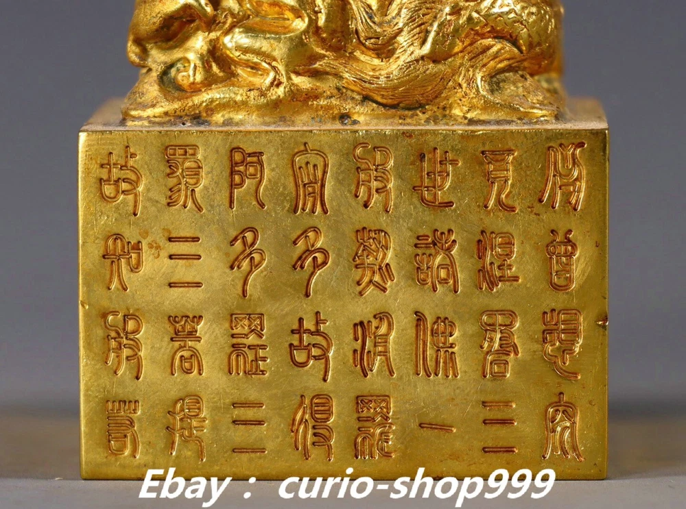 **** Welcome to our antique & Collectable Shop : Porcelain**** Description: Here is 3"Old Dynasty Copper Gold Inscription Dragon Loong Beast Pixiu Seal Stamp Signet . It is in good condition, and was created by skilled craftsmen in traditional style with fine handcrafts.This is a great piece of valuable collection, a valuable personal alter or a very good present. the handwork is very fine with incredible detailling. Don't miss out this chance to get it.Wish you good luck! . Material : Copper Gold Size : Heigh t 3.1 Long 2.3 B readth 2.3 (inch) Condition Perfect Condition. Perfect, with no scratches, flaws or repairs. Weight: 2.7 KG----included the weight of packing materials Shipping cost to all over the world countries in Free Honored Customers: We are selling the collectibles products and crafts in Beijing ,China since 1993 and collected them all over the world all the time . In our shop the bronze sculpture, animal, vase, urn, flowerpot,Incense Burner.Table chair sets. Militaria goods. buddha statues, Bodhisattva Statues, Buddhist Ritual Items etc is our speciality .Many of the items we sell come from our own personal collection and have been in our family for a very long time .My great-grandfather was the first in this family to start collecting art & antiques when he still lived in San Xi and Tibet around 1922 ,some of the paintings he once collected can now be seen in museums around the globe.We won't make money from t he shipping cost, if you dislike the item when you receive it,we can refund all of your money to you within thirty days. Please confidence for bidding . We recommend the combine shipping and offer you an big price discount if you order more items together ! 2024.10.03 四 号