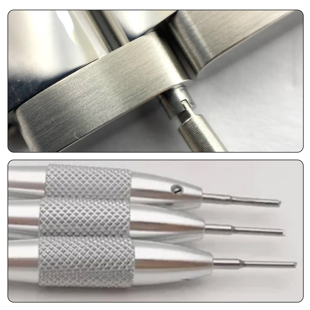 Special anti-scratch screwdriver set for metal straps especially Rolex and other. T Shape Blade Screwdrivers for RLX Watches Band Screws,1.2mm 1.4mm 1.6m. Big Aluminium Handle T Shape Blade Screwdrivers For Submariner Datejust Daytona DD GMT Watch Bracelets Bands Remove Screws, Watch Tools Size: 1.2/1/4/1.6mm, Diameter of handle: 10mm, Lenght: 105mm. Materials: Aluminium handle+stainless steel blade Price for 3PCS Screwdriver Set only.