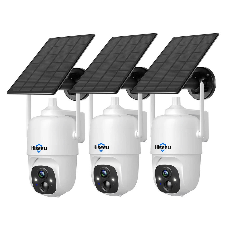 3PCS 2K 3MP Solar WiFi Security Camera with PIR Motion Detection & 2-Way Audio