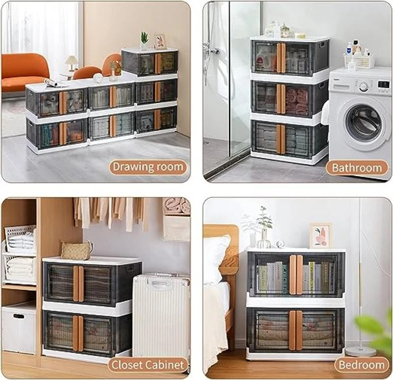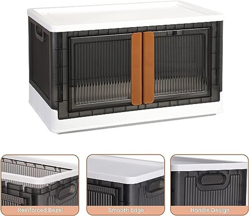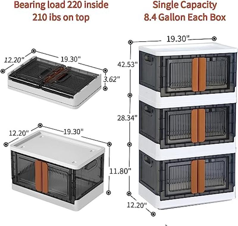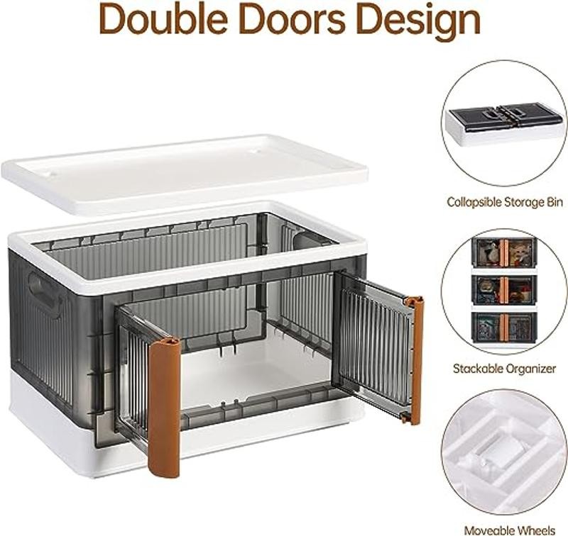 3PCS 32L Collapsible Storage Bin Clear Plastic Box Container w/Lid Wheel 2 Door
