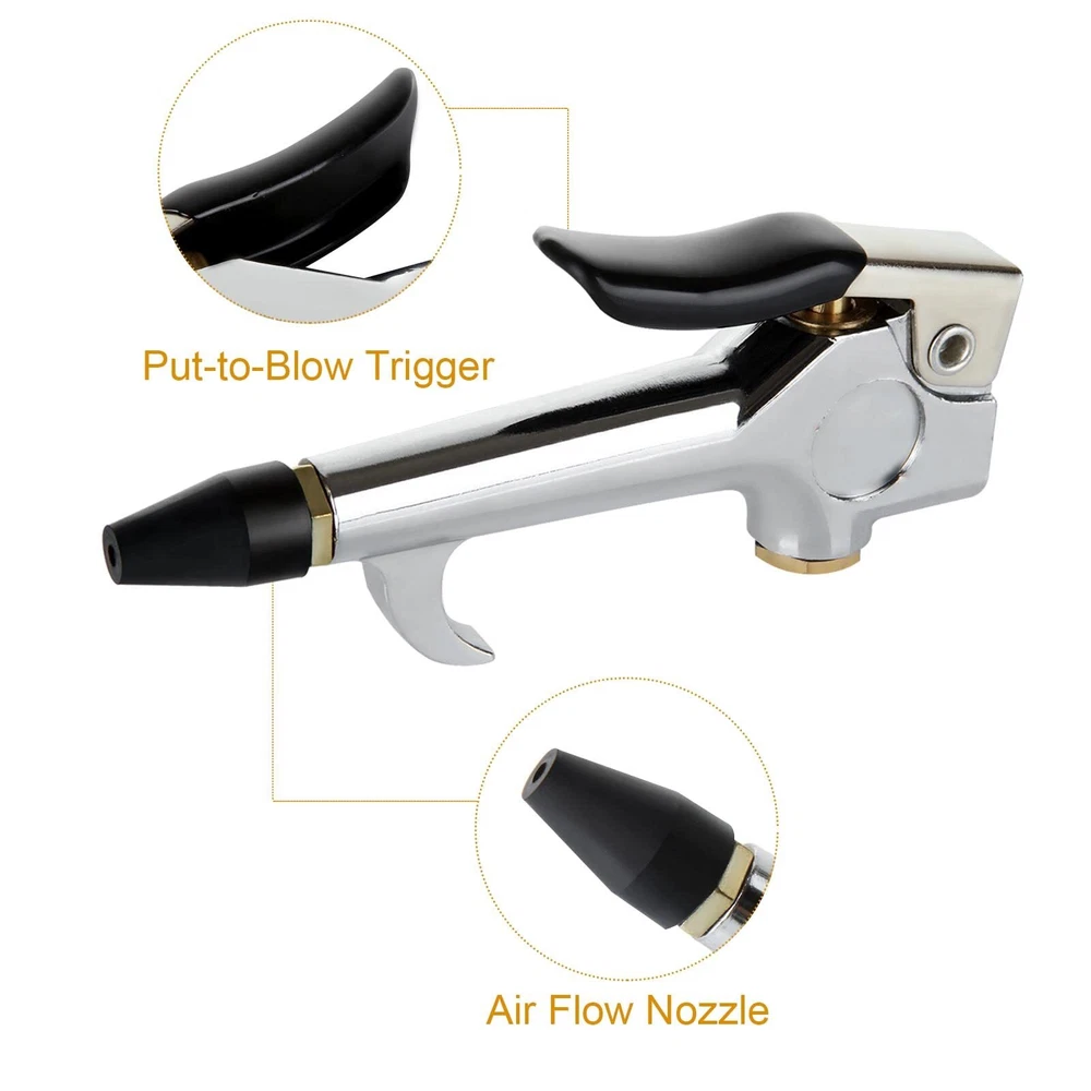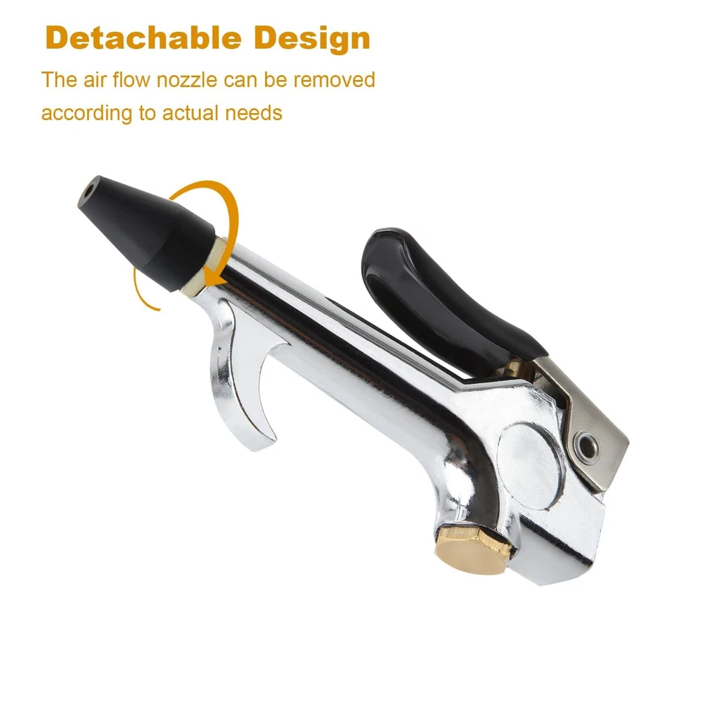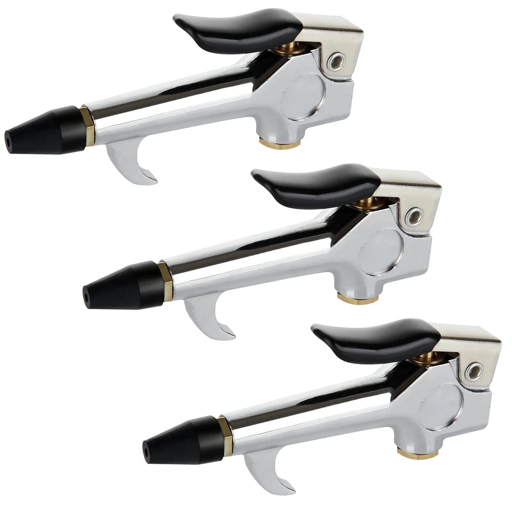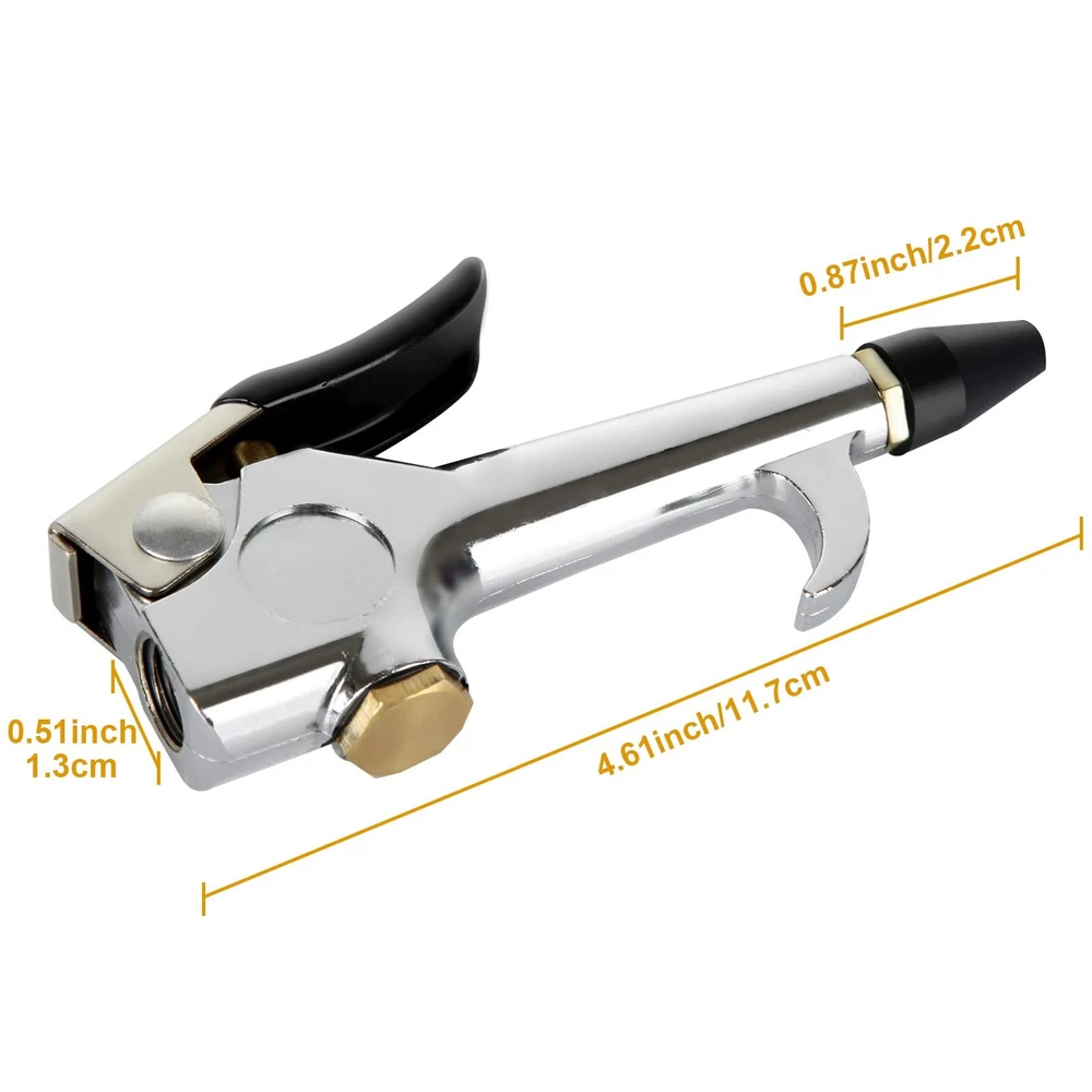 FVIEXE 3PCS Air Blow Gun, Air Compressor Air Nozzle with Rubber and Safety Tip, 1/4" NPT Lever Blow Gun Air Accessories Tool, Air Hose Blower Spray Nozzle Accessories for Home Garage Shop Industrial Dust Cleaning Features 1. 1/4" national pipe thread air inlet 2. Easily blow away dust, powder, debris, liquid or swarf during manufacture or assembly 3. Suitable for garages, factories, stores, industrial facilities and widely used to clean narrow gaps, heights, trachea and machine parts, etc. 4. Detachable air compressor accessories blow gun, can be removed according to actual needs 5. Premium Zinc Alloy, sturdy and durable, not easy to rust or damage 6. Super easy to control and can achieve precise air control Specifications Size: NPT: 1/4" national pipe thread air inlet Max working pressure: 174psi (12bar) Color: As Picture Shown Material: Zinc Alloy Package Included 3 x Air Nozzle for Air Compressor Warm Tips 1. Due to different monitors, the color of the objects in the picture may be slightly different from the actual object. 2. There may be slight errors in measuring dimensions by hand, please understand. Specification: NPT: 1/4" national pipe thread air inlet. Max working pressure: 174psi (12bar). Clear internal threads for easy installation Versatile Air Blow Gun for Compressor: Air blower nozzles deliver exceptional air flow, easily blow away dust, powder, debris, liquid or swarf during manufacture or assembly. Suitable for garages, factories, stores, industrial facilities and widely used to clean narrow gaps, heights, trachea and machine parts, etc. Detachable Air Compressor Nozzle Accessories: The standard safety nozzle can be removed according to your actual needs. You can easily replace the standard safety nozzle with long reach nozzle to get to hard to reach areas. Long reach nozzle is not included! Easy to clean and store, bring you more convenience Premium Material: Air nozzle blow gun kit is made of high-quality Zinc Alloy with soft rubber tip, solid metal structure and delicate work, sturdy and durable, not easy to rust or damage Easy to Use: Simply press thumb-controlled trigger to vent gas and gently loosen to close the blow gun air tool; Super easy to control and can achieve precise air control