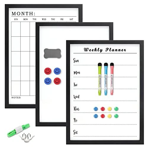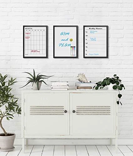 3PCS Magnetic 12" x 16" Small White Blank Board+Weekly Board+Monthly Board