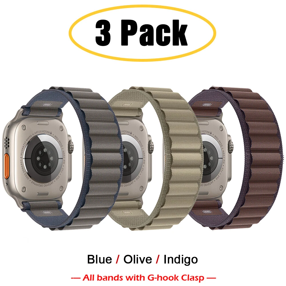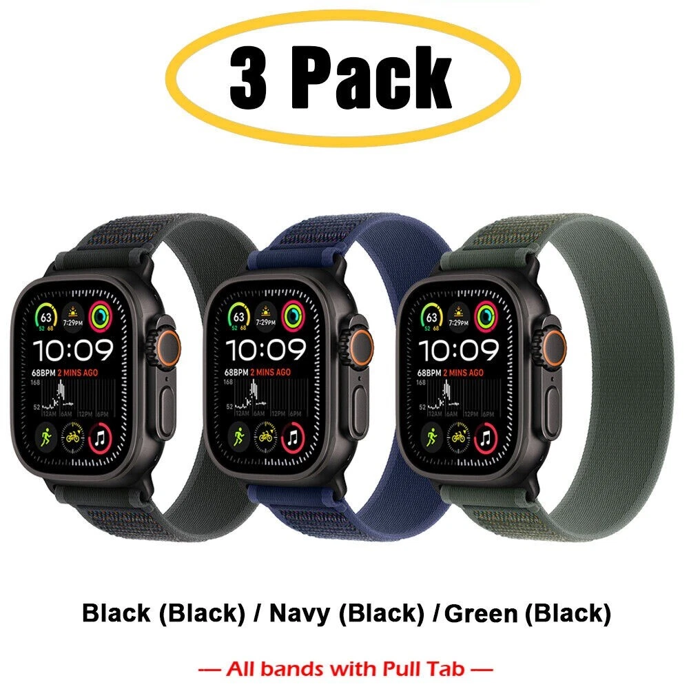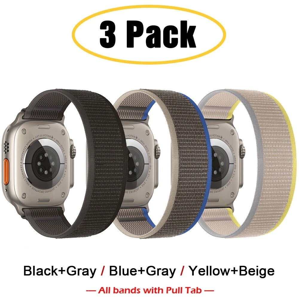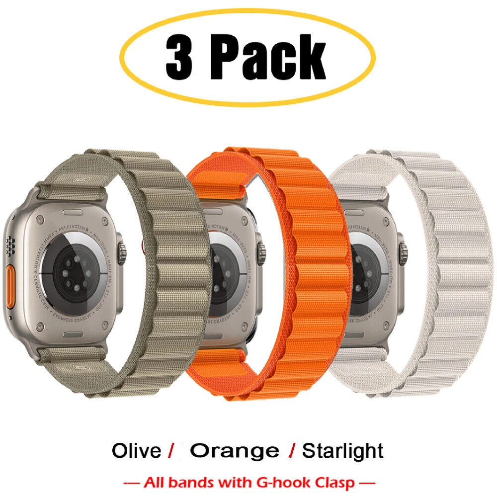 3PCS 2024 New Alpine/Trail Loop Nylon Sport Band for iWatch 40/42/46/49mm Ultra2 Features: 【High Quality Material 】 Made of high-performance nylon material. band is washable, durable, comfy to wear, skin-friendly and lightweight. 【Easy to Install】 Both ends of this Alpine Loop Band are equipped with watch lugs, which can be locked on the watch interface accurately and safely, effectively preventing the strap from falling off, and one-click installation and removal; Alpine Loop Nylon Band uses corrosion-resistant titanium G-shaped buckle, easy to put on and take off, adjustable length design, perfect fit. 【For All Scenes】 Suitable for many scenes, especially suitable for sports such as hike, run, outdoor Activities. Making the ultimate sports watch for athletes of all kinds required a unique approach. That’s why specialized bands for outdoor adventures, endurance training, and water sports are as meticulously crafted as the watch itself. 【For Wrist Size】 Suitable for 5.51"-8.26"(140mm-210mm) wrist Compatible With: > For Apple Watch Ultra / Ultra 2 > For Apple Watch Series 10 / Series 9 / Series 8 / Series 7 / Series 6 / Series 5 / Series 4 / Series 3 / Series 2 / Series 1 / > For Apple Watch Nike > For Apple Watch Hermes > For Apple Watch SE Package Includes: 1x 3PCS Alpine/Trail Loop Sport Band ONLY!!! (PS: The Apple Watch is Not Included) Note: You can customize the colors, please add a note on your order or send us message for what colors you want, for example: Black x1, Orange x1, Army Green x1. Then we'll send the colors as you requested.