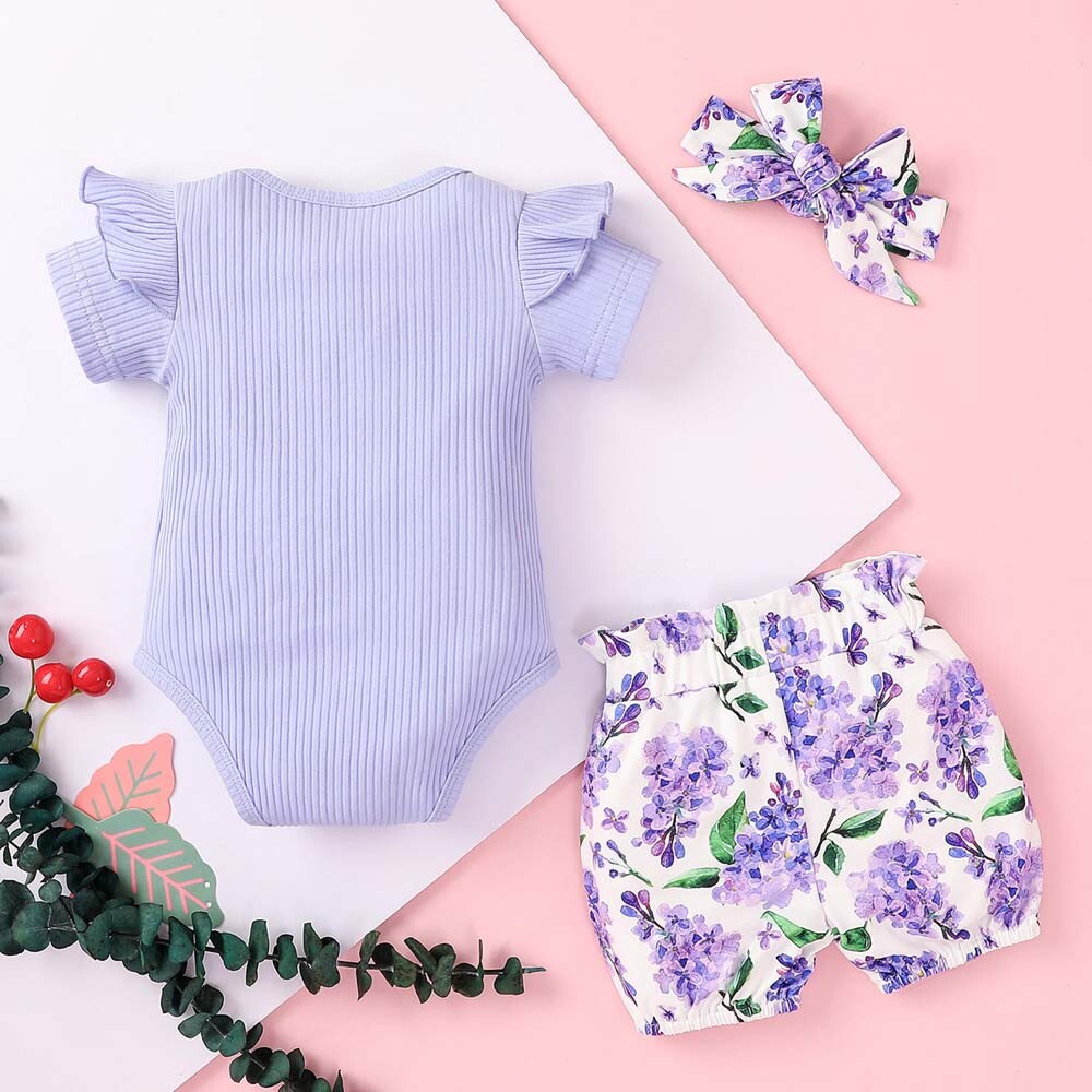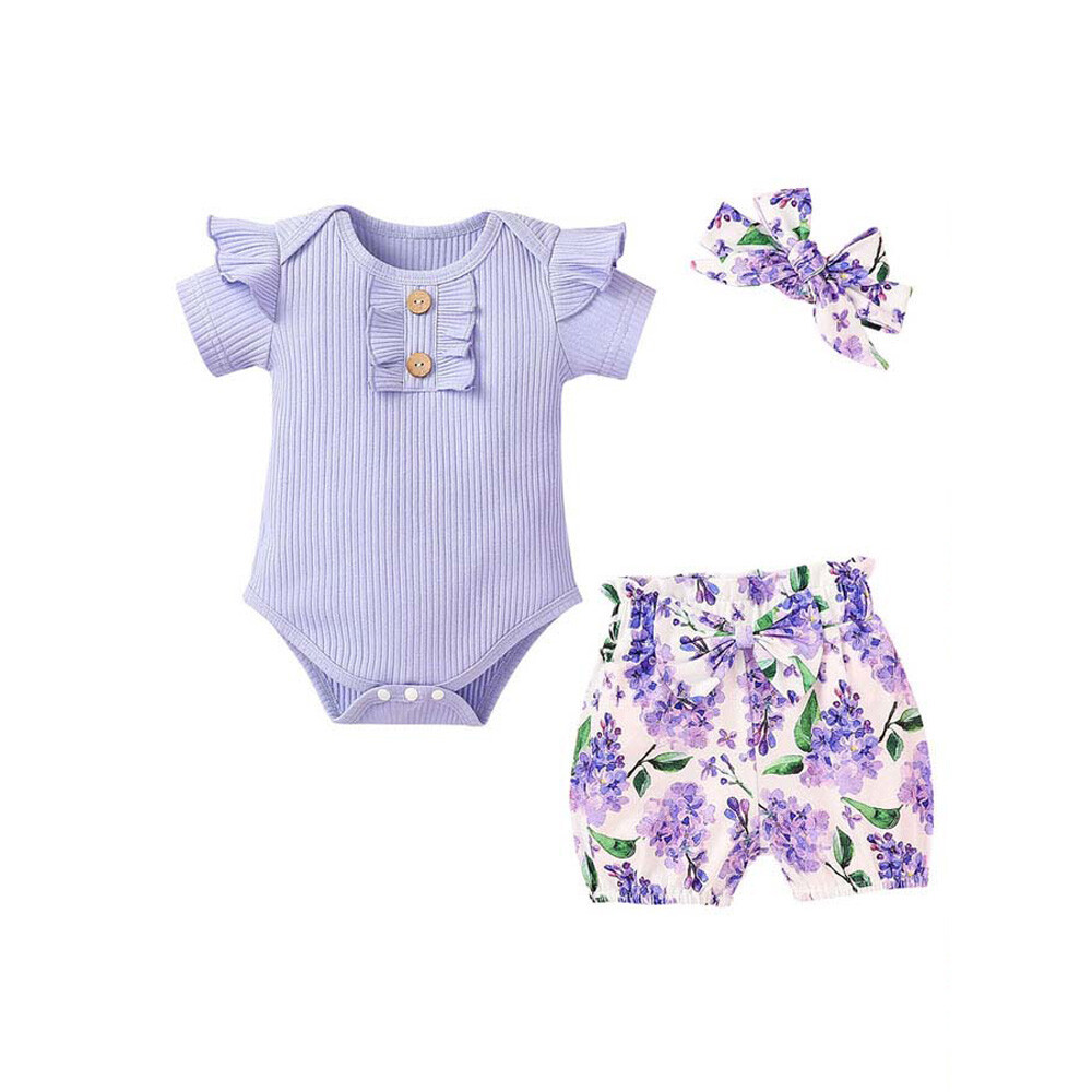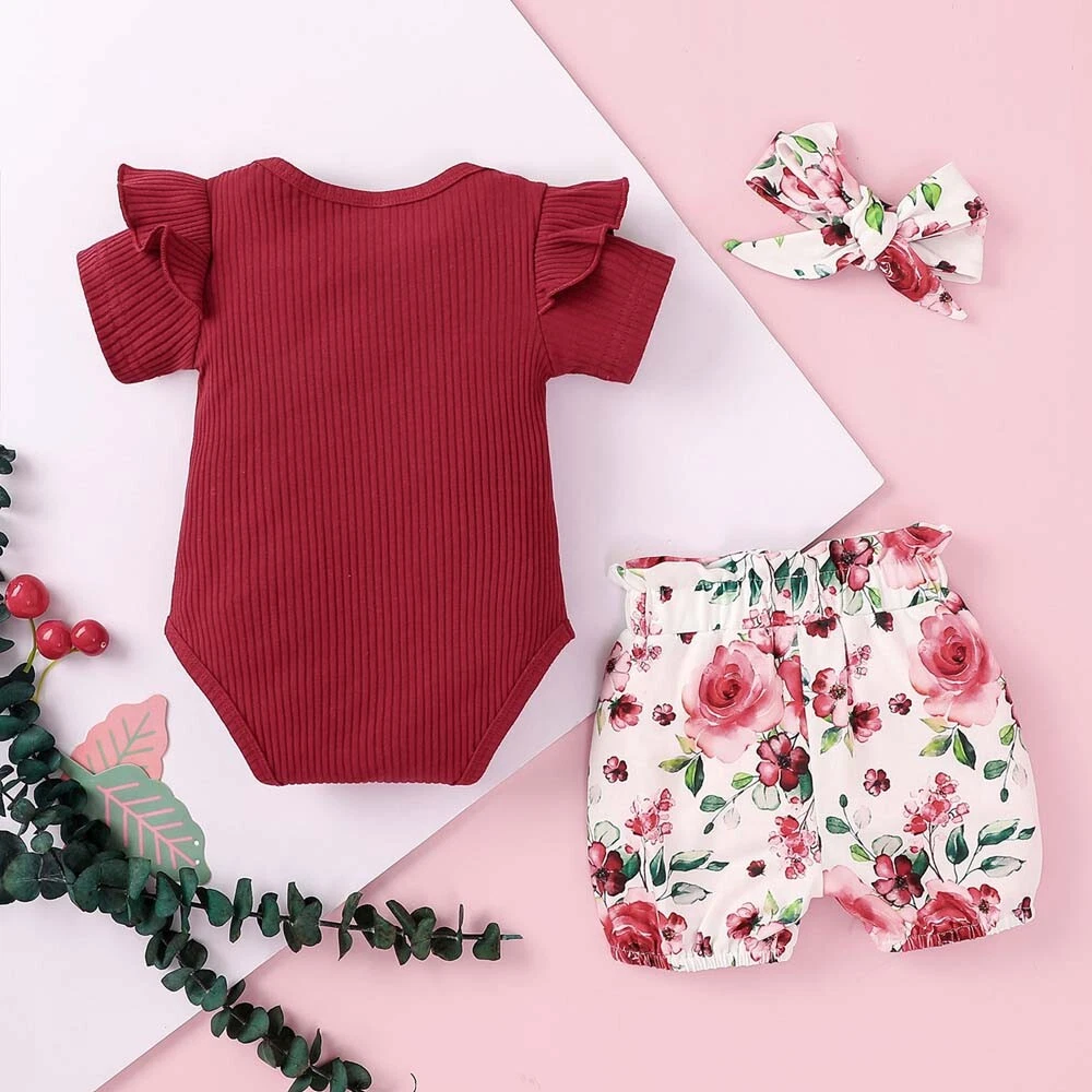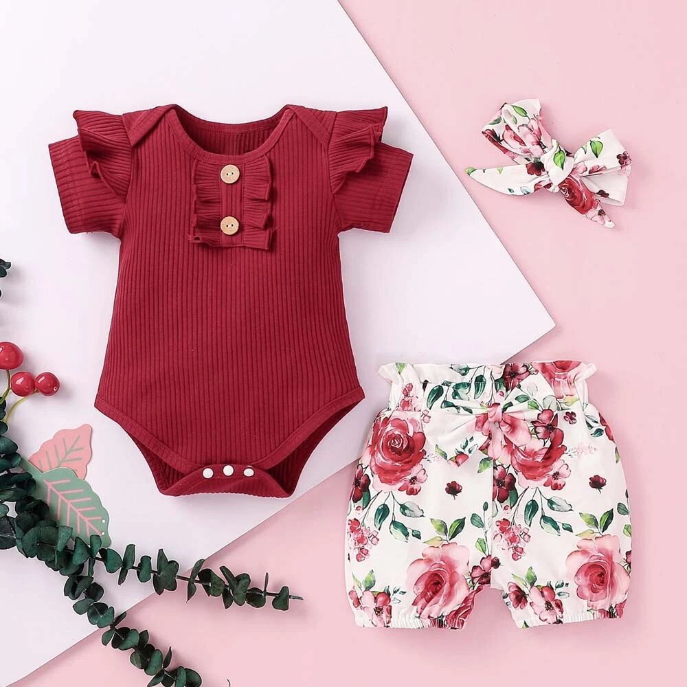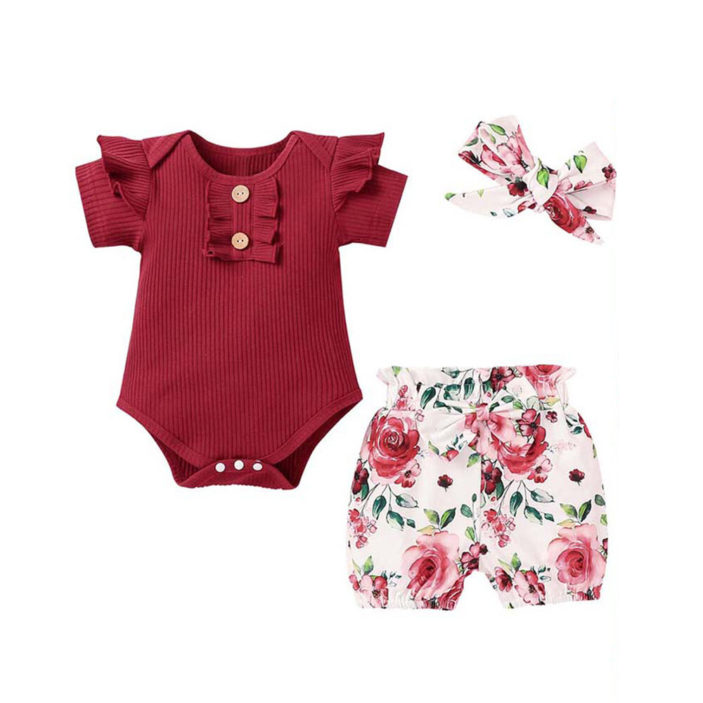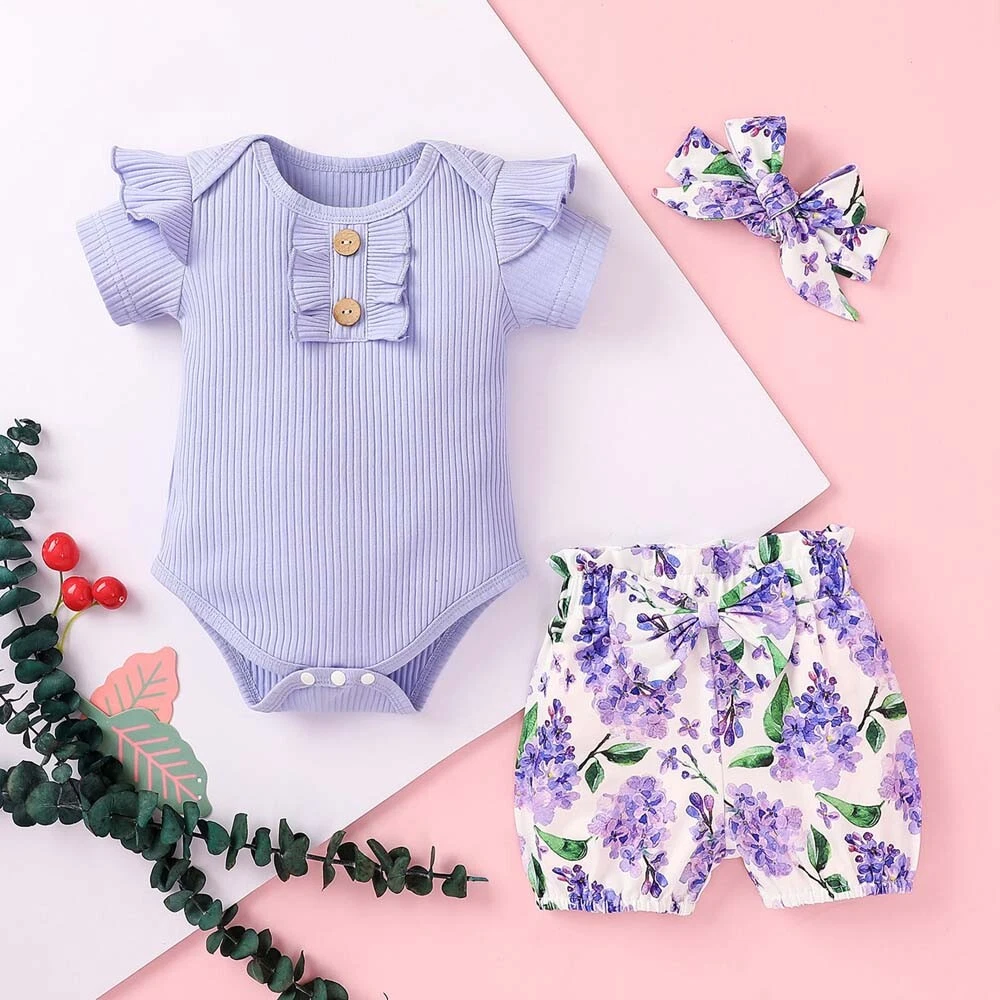 3PCS Newborn Kids Baby Girl Outfits Clothes Romper Bodysuit+ Shorts Pants Outfit