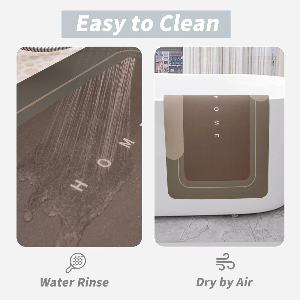 【Super Absorbent Diatomite Mat】These bathroom mats rugs are made of diatomite surface and have strong water absorption and quick drying function. The footprints and water stains on these magic mats will disappear in a short time, and keep the floor dry at all times. 【Soft and Comfortable】They are made of high-quality diatom mud material, which is comfortable to stand on, with smooth surface, no fiber falling, and will not fade after long time use. They are super absorbent floor mats that suitable for family life. 【Rubber Back】Anti-slip backing is necessary for silicone bathroom mats, which can firmly absorb the ground and prevent the mat from moving at will. At the same time, the quick dry bath mats will not allow water droplets to seep into the ground to prevent damage your floor. 【Combination Set】Our absorbent bathroom mats are divided into single-piece, two-piece and three-piece of different colors to meet your different needs, perfect for bathroom, kitchen, living room, bathtub edge, sink, etc. 【Easy to Clean】The surface of bathroom mats is smooth, so the dust and dirt can be removed by gently wiping with cloth or washing with shower nozzle. At the same time, the floor mats can also be machine washed, without the risk of damage.