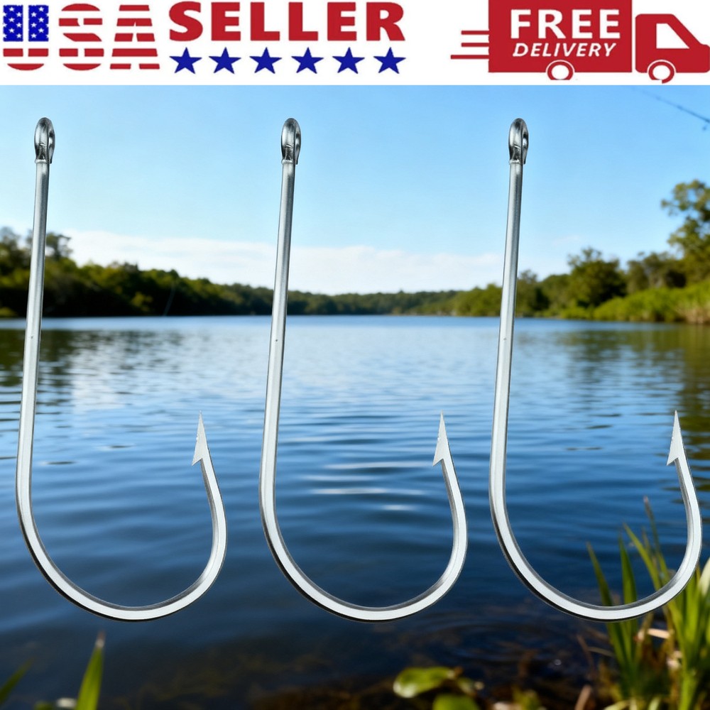 7731 Stainless Steel Super Large shark Fishing Hook Big Game Fish Tuna Bait 20/0 Description 1) Sea Demo n Big Game Fishing hook 2) Model Number: 7731 3) Material: Stainless Steel 4) Size: 20/0 5) Quantity: 3 PCS 6) Packaging: opp bag Forged, knife edge long point Tapered Brazed Ring Extra Strong and Sharp!!!
