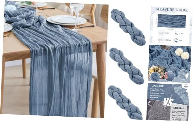 Menu 1. We require immediate payment. 2. We currently accept payment via eBay managed payments only. 3. Once payment is cleared, we will dispatch your shipment within 1-3 business days. Please refer to the "Shipping" tab for more information regarding shipping speed to your destination. 3PCS Table Runner Cheesecloth 10FT Dusty Blue Boho Gauze Fabric Rustic Sheer Cheese Cloth Runners for Wedding Bridal Shower Party Product description 【Cheesecloth Table Runner】 Size: 35" W x 120" L. You will get 3 pieces 10FT length cheesecloth table runner. The sheer rustic table runner is long enough to span a large table and drape gracefully across the table. It will gently sway in the wind, adding a romantic atmosp to your occasion. These eye-catching gauze table runners are ideal for arranging an elegant, stylish tablescape. 【Soft and Reusable】 The long table runner is made of good wrinkled design gauze fabric. The vintage wedding table runner is lightweight, soft to touch, natural drape, no pilling, durable and not easy to fade. It can be fully used as a decoration for your dining table, chair cover sashes, or an ornament for your party decor, etc. 【Elegant Decoration】 You can place runners on the table with flowers and candles to add an exquisite, elegant, and beautiful touch to your dining space at any event. It will leave a deep impression on guests and bring an upscale style to your decorations. And t are many different colors for you to choose from to match the theme you want. 【Wide Occasion】 The table runner is a good choice for your boho home decor, and it is versatile enough for various occasions, such as wedding decor, everyday use, receptions, birthday parties, engagement, baby shower and other life events. 【Easy to Care】 It is recommended to machine wash the table runner in a laundry bag on a gentle cycle, or hand wash it with mild detergent in cold water. Please don't iron or bleach the table runner, and it should be laid flat or hung up to dry. This can allow the table runner to be used for a long time. PLEASE MESSAGE US IF YOU HAVE ANY OTHER QUESTIONS, AND MANY THANKS FOR READING ALL OF THIS. Copyright ©#. All Rights Reserved.