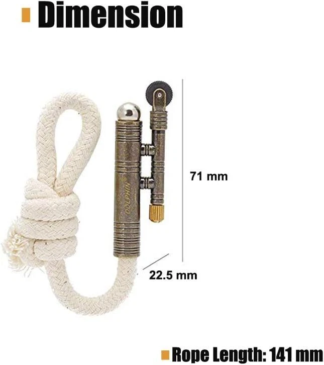 Free eBay listing template designed by dewiso.com 3PCS Windproof Rope Lighter Sailors Trench Vintage Lighter WWII Lighters Portable Survival Shepherds Lighter Outdoor Camping, No Need for Kerosene/Gas, Gifts Army Navy (Bronze, Silver, Gold) FREE AND FAST SHIPPING! Lightweight & Convenient: This mini rope lighter is convenient to carry with on go(37.3g/piece only); no need to refill kerosene or gas, perfect for wilderness activities, camping or other outdoor activities. How to use: just strike the attached flint wheel to create sparks, which are caught on a charred cotton rope, that has been partially withdrawn from a metal tube housing. The cotton ropes can be replaced once run out. This was typically used for lighting cigarettes which does not require a flame to accomplish. Once an ember is generated, it is windproof, and is extinguished by retracting the cord back inside the tube and an attached lid snuffs it out. The flame-less feature made rope lighter somewhat covert and was often used during WWII. The windproof feature is of great help to shepherds who are out in the windy field while watching their flocks. This rope lighter makes it easy to create a live ember, when, combined with tinder, can be coaxed into a flame for starting campfires. Note: With a new rope lighter, burn the end of the rope before using it with the flint. The end must be blackened for the spark to catch. › Product We offer a 30-Day Return Policy on items which you are not completely satisfied with. You have the option for a full-refund or an exchange of the item. No returns are available on items shipped outside of the US . Shipping We offer Free Shipping to the US and ship within 2 business days of payment, usually sooner. We use UPS express shipping. That's why your products are usually delivered within 3 days . Contact We try our very best to make sure every customer is completely satisfied. If there's a problem , message us! We're happy to help. 24/7 live chat available.