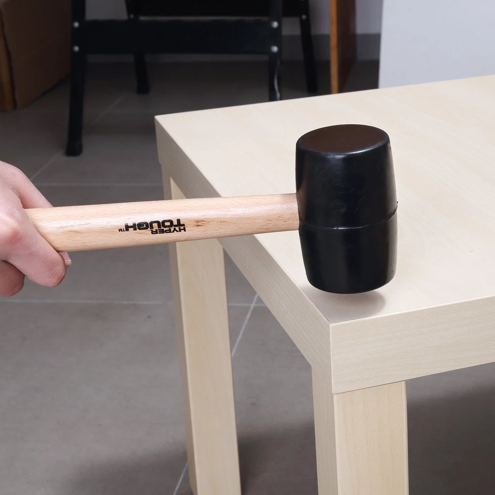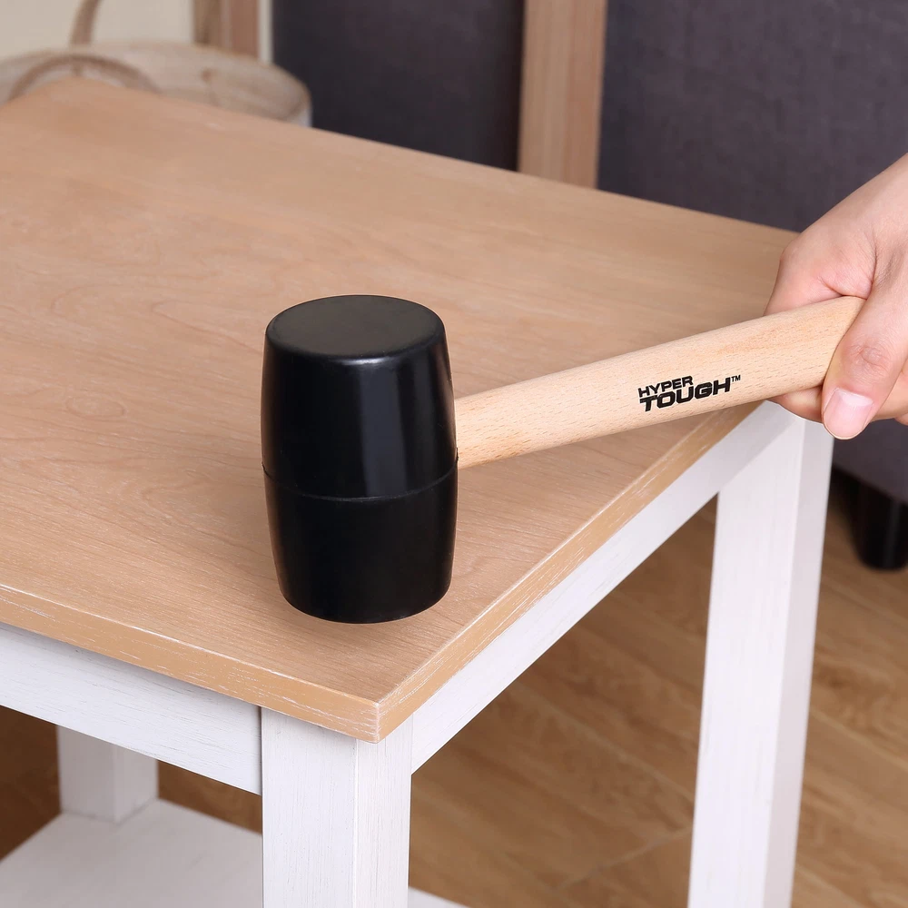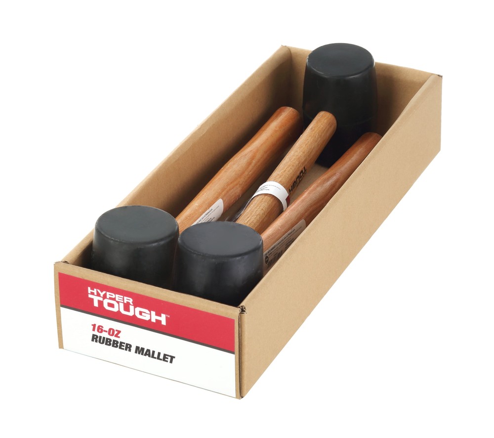 The solid rubber head of the 16 oz. Wood Handle Rubber Mallet delivers a softened strike, protecting parts from indentations and other damage associated with standard metal headed hammers. This mallet assists in cabinet assembly and most furniture assembly. It safely applies enough force for a solid finish without damaging a surface. This rubber mallet can also be used in applications on chrome, aluminum and magnesium parts on cars, trucks and motorcycles. 16 Ounce Rubber Mallet with Wood Handle Durable and lightweight Classic hardwood handle Wooden handle with simple contoured shape for comfort