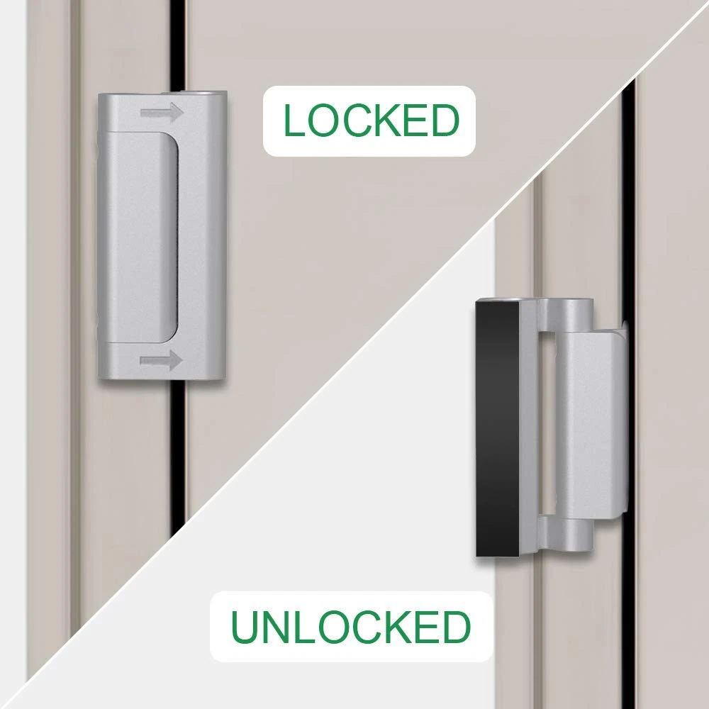 Upgraded Robust Security Design: door reinforcement lock is constructed from premium quality aluminum alloy and can withstand up to 800 lbs of force, making it 12-16 times stronger than a regular deadbolt against being kicked in. You may need 3 packs heavy-duty reinforcement door locks for your bedroom, front and back doors to prevent unauthorized entry, guard your home safe and protect your privacy. Super Easy to Install and Unlock in One Second: ez door lock includes detailed instructions and 8 strengthen scews, you can easily install the security door lock on the door frame within 5 minutes using a power screwdriver and drill. Metal reinforcement door lock upgraded groove design allows for swift locking and unlocking without requiring any tools, ensuring ease of operation, even in emergency. Child proof & Tamper-Resistant: child safety locks for doors features a spring-loaded mechanism that can be installed out of children's reach, prevent toddlers from opening the door to strangers or going out without permission. Moreover, the door safety locks from inside tamper-resistant features offer additional security against lock picking and bumping. Absolutely a must have door security devices in home security! Especiallly jam door lock for women who live alone and new parents. For Most Doors Opening Inward:door lock is suitable for most doors opening inward, this lock adds a robust layer of protection to your home, apartment, bedroom, front and back doors, as well as patio and courtyard doors. Please note: top door lock is not suitable for french double doors, garage doors, doors with gaps less than 0.07", outward opening doors, or doors with misaligned frames. It's an ideal gift choice for landlords, tenants, ladies, the elderly, pet owners, and new parents. Reliable After-sale Service: Secure home by , home security door lock defend your home safe, not only prevent break in but also easy open in emergency. swing door latch lock provide a 5 years after-sale service, ensuring that you can purchase and use our front door child safety lock with confidence. Whether you encounter any issues during installation or use, our professional french door lock stopper customer service team is always ready to assist.