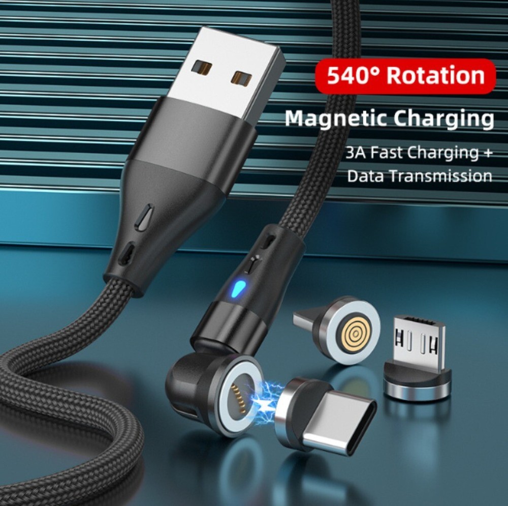 3-Pack Magnetic Fast Charging Cable for Micro USB Type C and iPhone