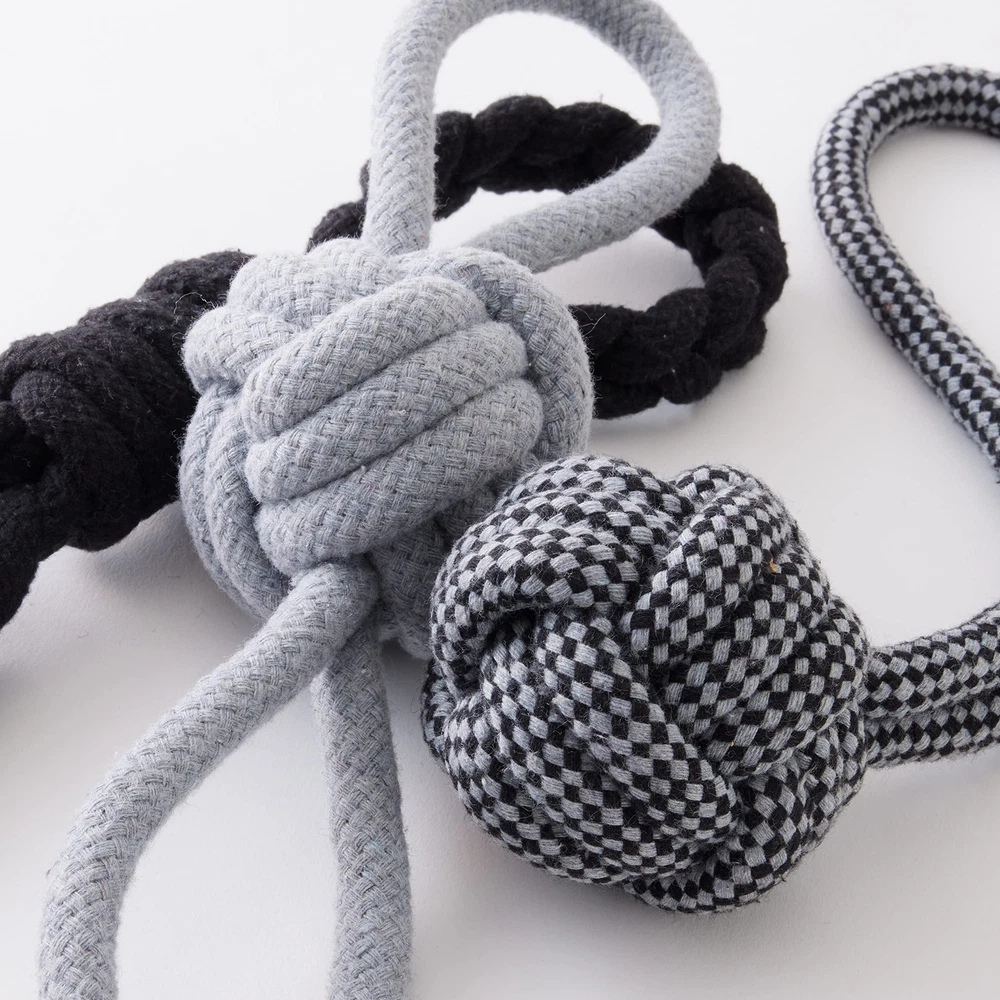 3 pack of simple cotton rope toys- ideal for fetch, tug or any game your dog prefers toys coordinate to the leash and rest of collection great stocking stuffer Cushion can be moved and washed on gentle cycle- hang dry