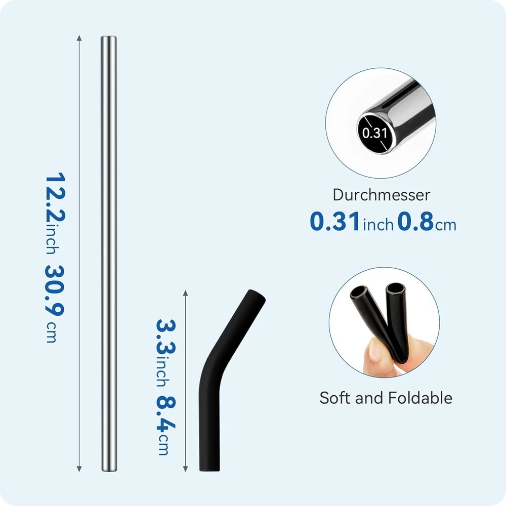 3-Pack Stainless Steel Straws for 40Oz Tumbler, Replacement Straw Size: 40 Straight Straw Material Metal Color Black Size 40 Straight Straw Special Feature Manual Unit Count 3.0 Count Number of Items 1 For 40oz Tumblers:12.2 inch long straight straw is compatible with Stanley Quencher (H1.0 and H2.0), Stanley 40 oz tumblers with Handle and Simple Modern 40 oz tumblers, also suitable for other brands of 40 oz tumblers, please confirm the size before purchase Sturdy and Durable : Made of 18/8 stainless steel, it has no metallic odor, does not fade, is safe and healthy, can be reused, will not rust or be damaged,is an alternative to disposable plastic straws Silicone Tips: Food-grade silicone tips avoids direct contact between teeth and lips and metal straws. Whether it's cold or hot drinks, it won't burn or freeze lips when drinking, providing protection while sipping,and is soft and comfortable Return Policy: We offer a 30 day return policy from the receiving date. Please contact us for a Return Label. Please use our return label provided by us because it will go back to our supplier. Feedback: Your satisfaction is very important to us! If you have any problem with your order, please contact us and we will do our very best to make you satisfied. As long as you are happy with your purchase, please leave a positive feedback for us. We will always leave you a positive feedback in return. If you have any problem with your purchase, please do not leave a negative feedback. Please Contact us ... and your issue will be solved quickly and positively We are a small family-owned business trying to make it, not a huge company that doesn't care ... We will ALWAYS do our best for you!