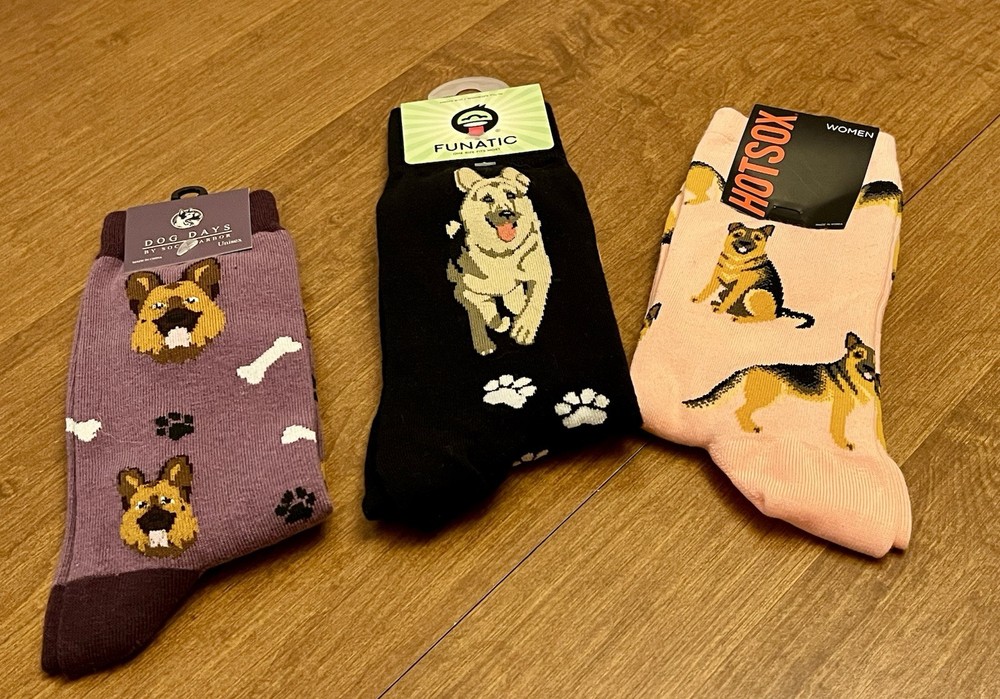 3-Pair NWT German Shepherd Dog Novelty Socks Pink Black Purple Women’s Unisex