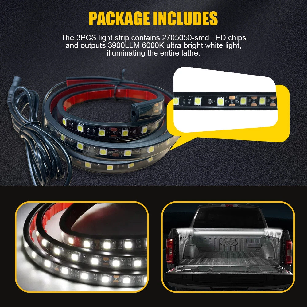 60'' 3 Pieces Truck Bed Lighting Strip Kit 270 LED Fits For RV Awning Light, truck bed light, step bar led light, side door light etc. Specifications: Light strip length: 1.5m/60" Lamp color: white LED Type: 5050 SMD Beads quantity: 90 LED per piece Waterproof rating: IP67 Voltage: 12V Service life: 50000+ hours Scope of application: Can be widely used for RV Awning Light, truck bed light, step bar led light, side door light etc. Features: Impressive brightness The light strips cpmtain 5050-SMD LED Chips with 270 pcs and output 3900LM and 6000K super bright light to illuminate the entire truck. 3Pcs 60" LED Bar Truck Bed Lights Cargo Work Strips Lamp For Chey Ford Dodge GMC 60'' 3 Pieces Truck Bed Lighting Strip Kit 270 LED Fits For RV Awning Light, truck bed light, step bar led light, side door light etc. Specifications: Light strip length: 1.5m/60" Lamp color: white LED Type: 5050 SMD Beads quantity: 90 LED per piece Waterproof rating: IP67 Voltage: 12V Service life: 50000+ hours Scope of application: Can be widely used for RV Awning Light, truck bed light, step bar led light, side door light etc. Features: Impressive brightness The light strips cpmtain 5050-SMD LED Chips with 270 pcs and output 3900LM and 6000K super bright light to illuminate the entire truck. Quick installation Euipped with self-adhesive tape and tough nail adhesive to paste firmly, it also can add the included mounting hardware for extra security. Safe connection Comes with breakaway cable, on/off switch,extension cable, mounting hardware for all your wiring needs and ensuring the security of your wiring when driving on the road. Durable design The light strips are well protected from rain drops, dirt and sand for long service life and high durability. All tested before shipment All products were tested for performance and to ensure the accurate parameter for your vehicle. Packaging include; 3X 60" LED Strip Light What makes you choose our products? Rapid logistics and response: We will dispatch your order within one work day since your payment to guarantee that you can receive your order immediately. High quality: The raw materials are strictly inspected high-quality ones. In addition, our inspectors will inspect all the products again before they are dispatched to guarantee all customers receive good products. Guaranteed after sales service: We provide quality guarantee services 2 year. Any customer can contact us for any problem during the period. We provide after sales services within one work day. High cost performance: Providing products with high cost performance is our lasting objective. Our products may not be the cheapest or expensive ones, but they must be the ones with the optimal cost performance. In general,you can enjoy reliable quality, speedy service along with competitive price. Your satisfaction is my goal.My customer service is not only the guarantee of money,but also the guarantee for your time and expectation. Item Specifics Brand Unbranded Type tailgate light Placement on Vehicle Rear Light Color Cold White Material rubber LED Universal Fitment Yes Items Included 3x 60" LED Strip Light Manufacturer Warranty 1 Year Size As shown in the picture Fitment Type Direct Replacement Waterproof rate IP65 Features Waterproof Warranty 1 Year Lighting Technology LED Service life 50000 hours Beads quantity 90 LED per piece LED type 90-5050-SMD Voltage 12v Lumens 3000 lm Light strip length 1.5m/60" Housing Color Black Application RV Awning Light, bed light, step bar led light, door light etc. Performance Part Yes Lens Color Clear Color Temperature 6000K Functions turn signal/brake light/running light/reversing light Features 1 Easy Installation, High Brightness Interchange Part Number 1 Pickup Truck Bed Cargo Van Load Work Area Boat Interchange Part Number 2 Super Bright 5050 SMD 90 pcs Total LED Fit for 1 Chevy Silverado 1500 2500 3500 Tahoe Colorado Suburban Fit for 2 Avalanche Dodge Ram 1500 2500 3500 4500 5500 Fit for 3 Nissan Frontier Titan Honda Ridgeline Fit for 4 Toyota Tundra Tacoma Ford Edge Expedition Fit for 5 Ford F150 F250 F350 F450 F550 Ranger Explorer Fit for 6 GMC Sierra 1500 2500 3500 Yukon XL Canyon Acadia FAQ ♥ If you have a decoding problem or any other problems, please contact us first, we will help you with it. We will reply you within 24 hours in working days. I'm a new seller, thanks a lot for your trust and convince! I will serve you with all my heart. ♥ Q1: Will this bulb fit my vehicle? A: We can match almost any vehicle to one of our bulb sizes. eBay only lets us include some vehicle fitments per listing, but if your vehicle does not show up on the compatibility table at the top of our listings, welcome you to contact us for free consulation before purchasing a product. Q2: My item has not arrived, what's taking so long? A: Sometimes items take longer than expected, especially if it’s going far or to rural area. Check with your post office to see if your item has been held up. Sometimes Royal Mail will not update a tracking number until it has arrived at its destination. If your item still don't arrive after a few days, let us know so we can double check for you and help solve it asap. Q3: My bulbs won't fit, help! A: Special bulb holder may be required. See if you can take the holder from the stock bulb. If not, let us know. The bulb size may be wrong, double check the item you received with the item you ordered. Do you have an aftermarket lighting housing? These may not be perfectly fitted for aftermarket bulbs and will require some manual modifications. Q4: Neither side lighting up? Both sides flicker, hyper flash, or work inconsistantly. A:Check the light fuses, and then check the ballast plugs to insure correct installation. If this doesn't work, there may be a voltage problem with the vehicle. You probably just need a relay or capacitor. Even though some bulbs are builtin resistors, they may still need a decoder. Pay & Ship (1). We gladly accepts payment via PayPal, 