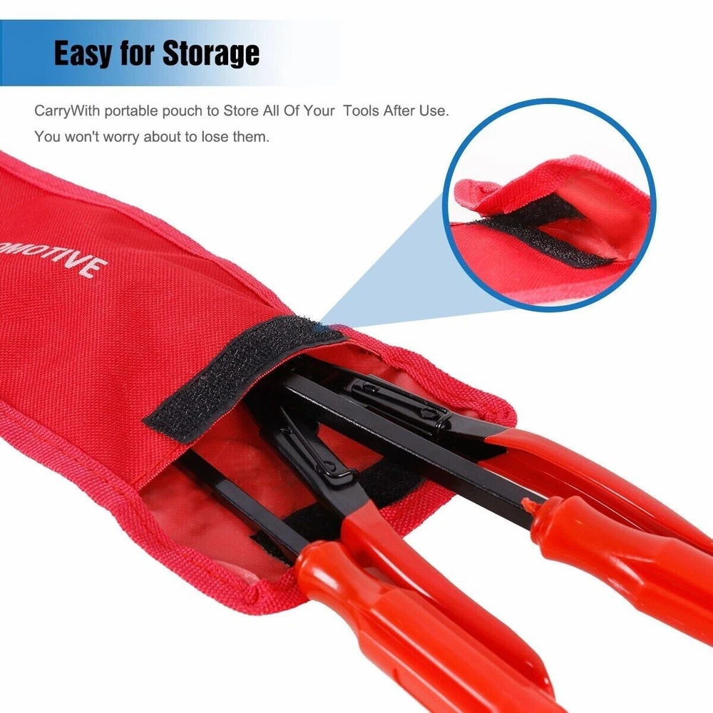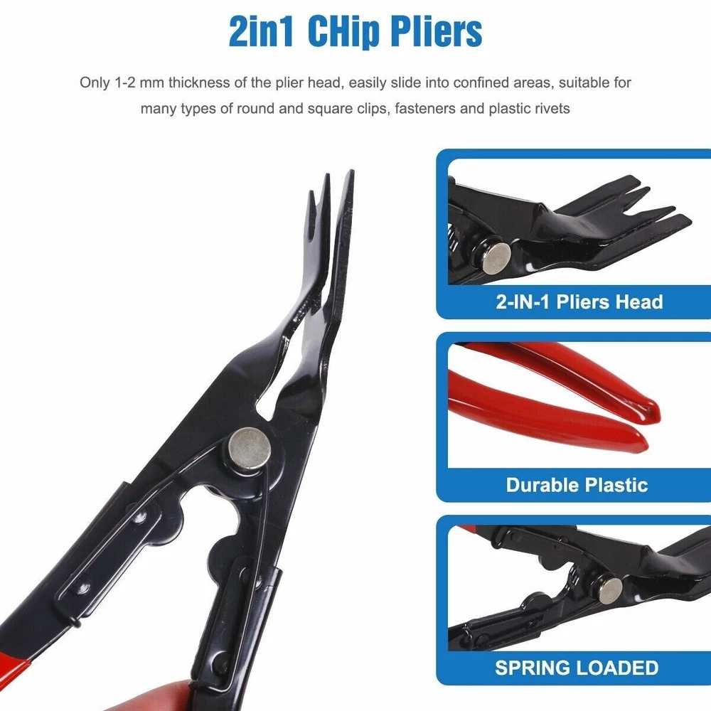 Feat ure : Fastener Removal Trim Tool : Work great for automotive interior and exterior trimming work, but also used as a bike tire remover and pushpin puller. Clip Remover Tool: Made of No.65 Manganese Steel bar, it's much tougher than common carbon steel pliers,Easy to hold in hand, effectively save effort and time, you will feel comfortable to use. Auto Trim Tools : Spring-loaded design allows quickly remove the nails, clamps, door panels, dashboards and interiors ; it will not damage your lovely car body. 2 in 1 Clip Pliers : with 1-2 mm thickness of the plier head, suitable for many types of round and square clips, fasteners and plastic rivets, easily slide into confined areas. Package Included : 3Pcs Clip Pliers Fastener Remover and a Storage Bag.