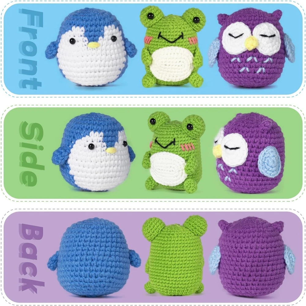STEP-BY-STEP GUIDE & VIDEO: Looking for the perfect crochet kit for beginners? Look no further than our crochet animal kit! With easy-to-follow instructions and beginner-friendly techniques, this set is perfect for those new to the craft.Our step-by-step videos for users guide beginners from start to finish! CROCHET KIT FOR COMPLETE BEGINNERS: This beginner crochet kit for adults includes all the knitting and crochet supplies you need to create three adorable creatures. With high-quality yarn in a range of colors,eyes, a yarn needle, a crochet hook, stuffing, keyhook and a bag that holds it all , this kit has everything you need to get started. CUTE DESIGN: make a frog penguin owl, we are equipped with enough threads for beginners to learn without worrying about running out of threads, each project is fun to make and will put a smile on everyone's face. GREAT GIFT: Not only is this set perfect for beginners, it's also a great gift idea for anyone who loves crochet or cute animals. Whether you're making them for yourself or for someone else, these creatures are sure to bring a smile to your face. Contact us If you have any questions, suggestions or product inquiries, you can contact elcanous customer service at any time via eBay messages. We will get back to you within 24 hours and you can be sure that we will do our best to help you! Payment We accept Payoneer, Visa,Immediate Payment is required! Shipping We provide FAST, FREE SHIPPING to the Continental 48 US States. We do not ship to Alaska, Hawaii, APO/FPO, PO Boxes, or any US Protectorates. PLEASE PROVIDE A PHYSICAL ADDRESS. Your order will be processed within the allotted time frame. Most items ship out with 3 Business Days after payment is received. Please not that some orders may be shipped in multiple packages. Return We take our reputation seriously. If you have any questions or concerns, please contact us and we will respond back to your message within 24 hours.