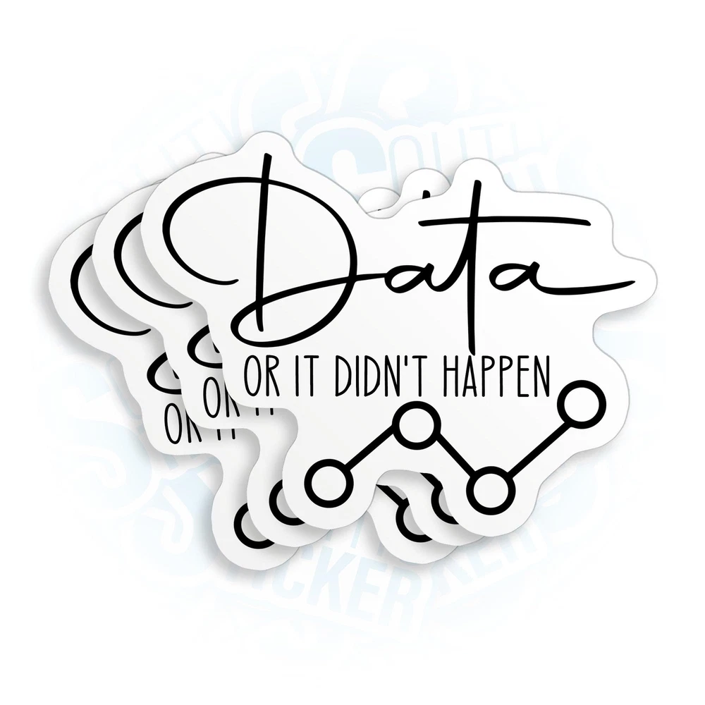 (3Pcs) Data Or It Didn't Happen Sticker Funny Quote SPED Inclusion ABA Therapist BCBA Inclusion Neurodiversity Vinyl Die-Cut Stickers for Book Hard Hat Water Bottle Laptop Decor Stuff Gifts 3 Inches