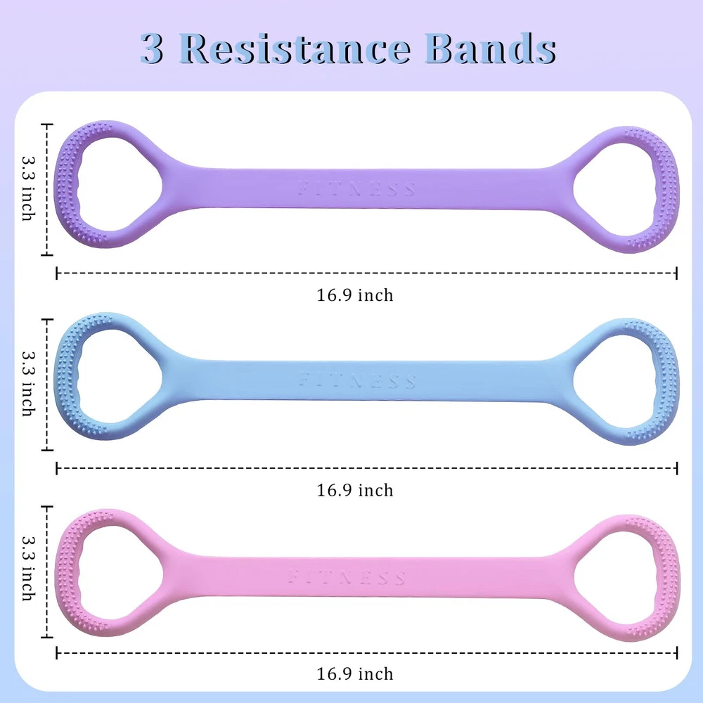Specifications Material: silicone Size: about 50.5*9.5cm/19.88*3.74inch Color: pink, purple, blue Category: tensioner Applicable scenarios: fitness equipment, fitness and body beauty Applicable objects: young people 【Upgraded Elasticity Resistance Bands Set】This figure 8 resistance bands is made from skin-friendly silicone material with enhanced elasticity for more comfortable and effective exercise experience. 【Figure 8 Exercise Bands Anti-Slip Design】With elastic bands’ anti-slip design featuring silicone particles on the handle, you can enjoy a secure grip and prevent any accidental slips during your exercise routine. 【Ergonomically Designed Elastic Bands】The ergonomic design exercise band ensures maximum comfort and ease of use, allowing you to focusing on your fitness goals without any distractions. 【Portable Resistance Bands】This elastic bands for exercise with its 8-shaped portable design, you can easily carry this resistance band set with you anywhere. Whether you're working out at home, at the gym, or on the go, home gym equipment is the perfect companion on your fitness journey. 【Versatile Fitness Essential】This flexible gym accessory tailored for women accommodates various exercise styles, such as yoga, pilates, and physical therapy. Whether you're a fitness enthusiast, in search of easily transportable workout equipment, or require assistance with physical therapy, these resistance bands cater to individuals of all fitness levels.