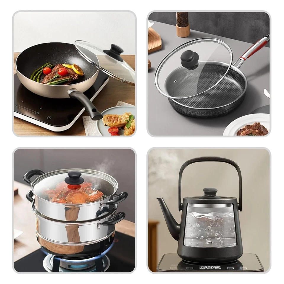 These saucepan lid knobs are easy to install and comfortable to hold, can be used to replace old or broken knobs, fix perfect on the lid. Protect your hands from being burned by the hot cover. Made of high quality bakelite material, high temperature resistant, insulating, wear-resistant, sturdy and durable, not easy to deform, can be used for a long time. Easy to remove and clean. Cover knob diameter: 4.2cm, bottom diameter: 6cm, screw length about 1.9cm, color: black. Suitable for most types of glass lids or iron pot lids. The pot lid knob replacement handle is suitable for many kinds of cookware lids, such as kettle, oil pot, frying pan, pot lids, saucepan lids, pan lids, etc. Packaging: 3pcs pot lid cover knob handle with screws. Specifications: Material: Bakelite + plastic + metal Color: Black Size: Please refer to the picture Features: 1.This is a replacement lid with a practical handle, which is easy to hold, prevent the hot lids from burning your hands. 2.These replacement knobs for pan lids are fit most pot lids, perfect to replace a broken knob on a glass saucepan lid. 3.Easy to install, just place the knobs, washers and metal washers correctly and tighten the screws. Package included: 3pcs slow cooker lid knobs