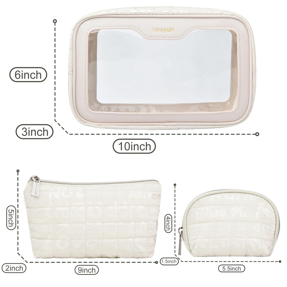 Hiroyuki 3Pieces Clear Makeup Bag Set Large Capacity Cosmetic Bag Large Travel Toiletry Organizer Bag Set Plastic Transparent Cosmetic Bag Wash Bag (white3ps) Spacious Design:This set comes with three different sizes, Large(10×3×6inch) Medium(9×2×5inch) and Small(5.5×1.5×4inch), you can apply them to different usage, to meet your daily diverse needs. follow the TSA 3-1-1 liquids rule, you can easily pass through the security and store your cosmetics organized. This bag is an airplane travel essentials. Large space can easily contain your makeup brushes, sunglass, hair accessories and snacks etc. Quality Materials:Made of high quality pvc and finest linning material, which is practical and breathable, with durable material, it can ensure you to use for a long time. This clear toiletry bag comes with the smooth metal zippers and reinforced sewing to provide long time using, you can carry it in bathroom, car, beach and anywhere you want. Multi-Functional Use: This makeup bag set is perfect for everyday use as organizing cosmetics and skincare products, storing essentials, or packing toiletries for travel. Its lightweight design ensures it fits seamlessly into your suitcase without taking up too much space. Whether you're organizing your beauty essentials at home or packing for a trip, these bags offer versatile storage options for all your needs. Versatile Use: Ideal for travelers, this makeup bag doubles as a toiletry bag, purse, or bathroom organizer, making it perfect for business trips, vacations, and outdoor activities. It also makes an excellent choice as Mother's Day gifts for women 100% Satisfied After-Sales Service--If you have any questions or dissatisfaction with our makeup bag set, please contact our after-sales service Description This on-the-go wet/dry toiletry bag is the perfect reliable companion for traveling and working out. Perfect for use as a travel toiletry bag, shower bag, cosmetic bag, daily necessities bag, etc. Perfect to hold your skincare products, makeup, hair accessories and other accessories, suitable for various occasions such as preppy start, student dorms, bathrooms, weekend trips and so on. Double thickened linning material, frosted transparent surface, large opening, smooth zipper, reinforced stitching, suitable for long time use. Different sizes, support tsa, meet your different needs SHIPPING Domestic Buyers - We have confidence in our products, but if you are not fully satisfied please contact us within 30 days of purchase and you will get full refund. - We ship within 3 business days of payment, usually sooner - We offer FREE shipping on all orders! - We only ship to the lower 48 states, no APO/FPO addresses or PO Boxes allowed International buyers – please note: Import duties, taxes, and charges aren't included in the item price or postage cost. These charges are the buyer's responsibility. - Please check with your country's customs office to determine what these additional costs will be prior to bidding or buying. * Order Cancellation Policy ** You can return a product for up to 30 days from the date you purchased it. 1. The seller reserves the right to cancel the special case only due to eBay cancellation fee. 2. The decision of seller is the final. 3. The seller will respond to the cancellation request within 2 business days. Please wait for the result of cancellation. 4. In case the cancellation is not completed by some reasons, the buyer can follow the options below to get the refund. 4.1 The buyer can reject the item when it arrives. 4.2 The buyer can send the item back to the seller within 30 days If the buyer receives item (USA Shipment ONLY). The seller will provide the FREE return label to the buyer when the buyer opens " Return Item" case on eBay by using the reason as "Change my mind" ONLY. 5. When buyer has placed the order. The order will be processed and completed by automatic warehouse system within 5 minutes. In case that buyer sends the cancellation request after 5 minutes of placing the order, the request will be rejected. **Sending direct message to cancel the order is not allowed for every case.* Return Policy For the return case - If buyer would like to return the items for refund or replacement, please CONTACT SELLER to receive the free return label from seller. The refund or replacement will be processed with the tracking number of return label which is provided by seller only. The other ways of return which are not approved by seller will not be processed for the refund or replacement.