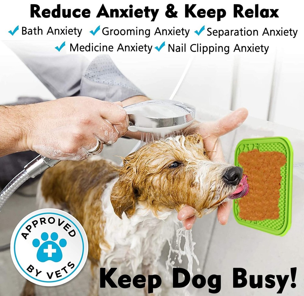 dog lick pad, puzzle dog lick mat with suction for dogs bathing grooming - Distact your dog, calm them dowm. Make bathtime easier and fun! Material: Food Grade Silicone Diameter Size: 6 x 6 inch. Great for small & medium dogs, cats and other animals Package Includes: 3 pet lick pad & 1 cleaning brush & 1 Silicone Spatula Easy to use: 1 Spread peanut butter or cream cheese on then Dog Lick Pad 2 Ang then Stick the pad to a suitable surface on which the Suction Cup can work in your bathroom. Such as shower tiles, glass, bathtub... 3 Enjoy the Fun and Easy Shower Time with Your Fur Friend. Others Feature: 1 can be used for brushing, nail trimming, and training... 2 reduces boredom,anxiety and destructive behavior, calm your pet down 3 Can be used as a puzzle slow feeder, slow down you ★ MAKE BATH TIME FUN - Just spread peanut butter and other snacks on the dog lick mat and stick to the slower tile, bathtud or glass. It effectively distract your pets and calm them down during bathing or grooming time. Use for small to large dogs and cats. ★ IDEAL GROOMING MATE - Not only for bathing, this Lick mat for dogs cats also can be used for brushing, nail trimming, and training... Dog licking mat reduces boredom,anxiety and destructive behavior. Calm your pet as they enjoy their favorite treat. ★ SUPER STRONG SUCTION - dog lick mat with 48 suction cups avoid falling off, you can stick it on your tub, shower wall, tiles or other smooth surface. Or stick in the woodlen floor as a puzzle slow feeder dog bowl. ★ SLOW FEEDER DESIN - Slow feeder Lick mat make your pet slow eat to protect stomach, reduces the risk of choking bloat, choking and overeating, Promote your pet's mental and physical health. ★ EASY TO CLEAN - Our dog lick pads come with cleaning brush & Silicone Spatula, you can easy hand wash with soapy water and brush to remove peanut butter from the silicone surface. Made of food-grade silicone material, strong flexibility, never deformed. Dishwasher safe.