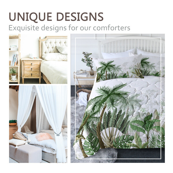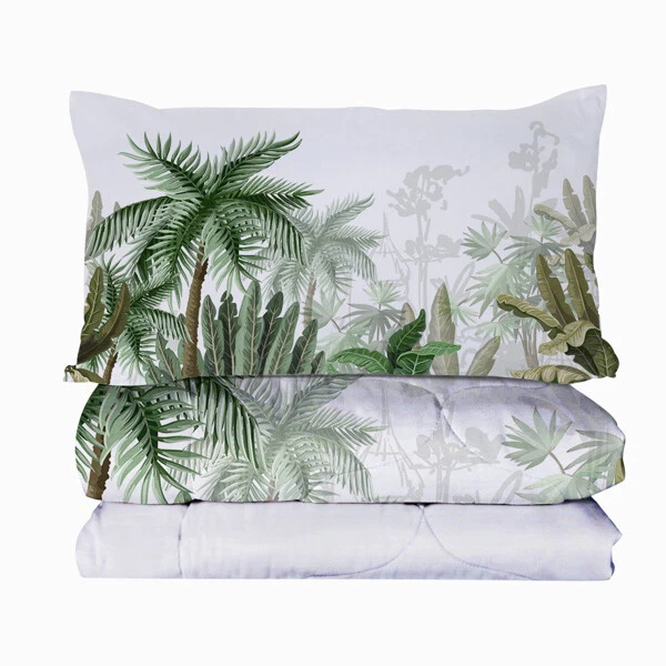 1. This comforter set is perfect for adding a tropical vibe to any bedroom! The soft microfiber feels cozy, and the vibrant coconut tree print looks stylish. Fits full-size beds perfectly and includes matching shams. Easy to care for and super comfortable—definitely worth it for the price. Adds a fresh, relaxing feel to my room!