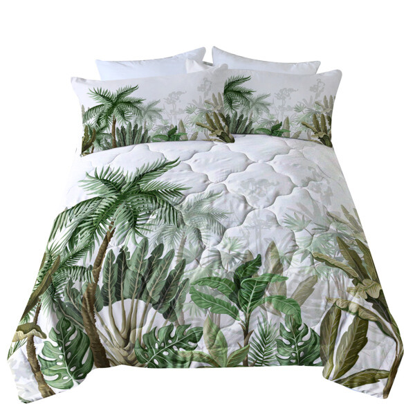 3-Piece Full Size Coconut Tree Comforter Set - Tropical Banana Leaf Bedding for Home & Bedroom