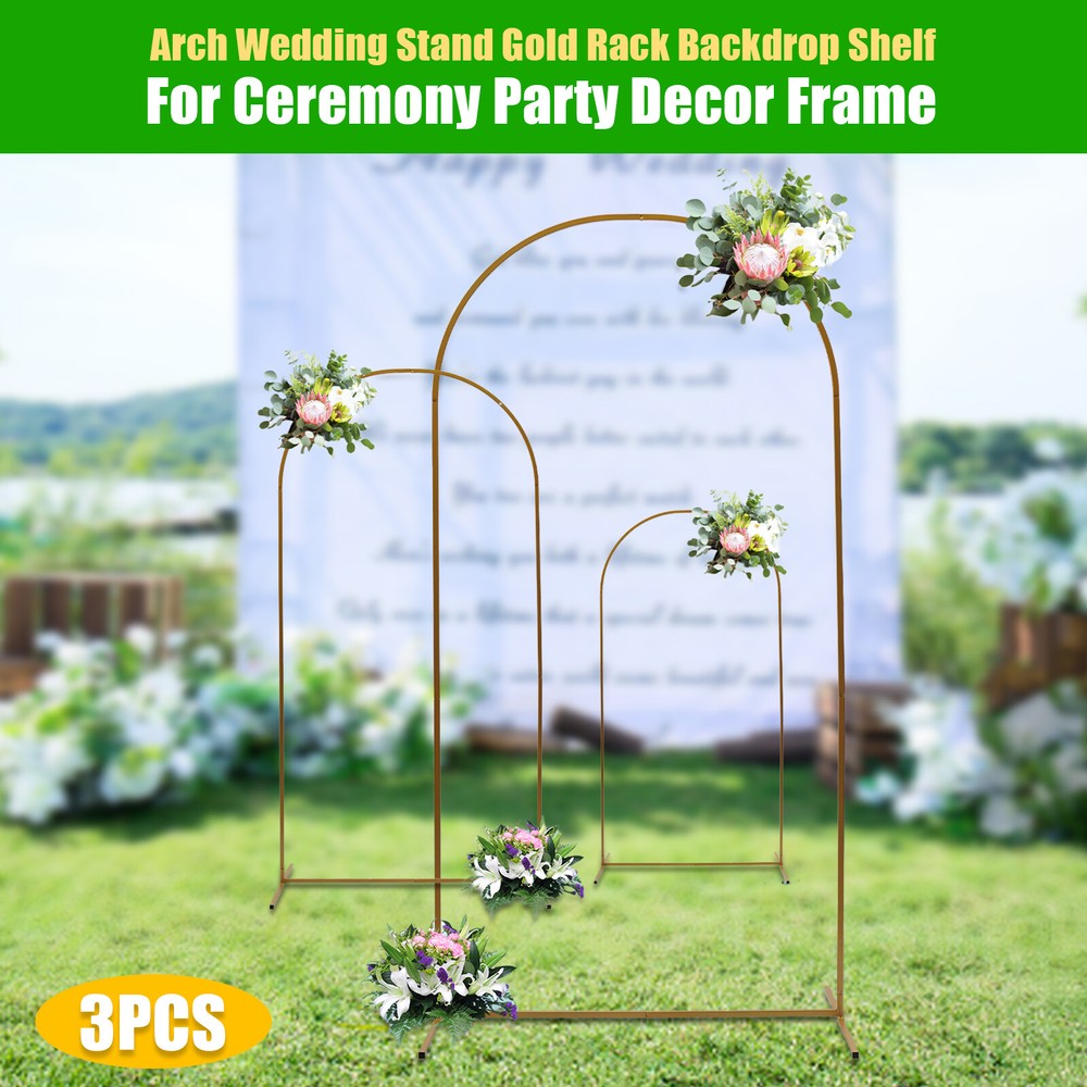 Color: Gold Material: Carbon Steel Style: Modern Shape: Arch Process: Painted+Welding Assembly Required: Yes Load-bearing Capacity: About 5/8/10kg(11/18/22lbs) Package Size: 78.5*21.5*6cm/31*8.3*2.4inch Product Size: 80*50*180cm/31.5inch*19.7inch*5.9ft, 100*50*200cm/3.3ft*19.7inch*6.6ft, 120cm*50*220cm/3.9ft*19.7inch*7.2ft Gross Weight: 5.46kg/12lbs Net Weight: 5.1kg/11.3lbs 3 Pieces Wedding Arch Stand Gold Rack Backdrop Shelf Party Decorative Frame Specification Color: Gold Material: Carbon Steel Style: Modern Shape: Arch Process: Painted+Welding Assembly Required: Yes Load-bearing Capacity: About 5/8/10kg(11/18/22lbs) Package Size: 78.5*21.5*6cm/31*8.3*2.4inch Product Size: 80*50*180cm/31.5inch*19.7inch*5.9ft, 100*50*200cm/3.3ft*19.7inch*6.6ft, 120cm*50*220cm/3.9ft*19.7inch*7.2ft Gross Weight: 5.46kg/12lbs Net Weight: 5.1kg/11.3lbs Package Included 29*Poles 1*English Manual Color: Gold Material: Carbon Steel Shape: Arch Process: Painted+Welding Load-bearing Capacity: About 5/8/10kg(11/18/22lbs) Package Size: 78.5*21.5*6cm/31*8.3*2.4inch Product Size: 80*50*180cm/31.5inch*19.7inch*5.9ft, 100*50*200cm/3.3ft*19.7inch*6.6ft, 120cm*50*220cm/3.9ft*19.7inch*7.2ft Description When you put on your white wedding dress, only a beautiful and exquisite wedding arch can match your purity and nobility! Choose this exquisite gold arch backdrop stand to open the door to happiness! The right height of 6.5ft makes it look more atmospheric. You can decorate it with flowers, greenery, balloons, tulle cloth, letters, garlands, etc. to make it a dreamy and romantic background. It will take you into the hall of happy marriage. Key Features Wonderful Memories : This gold arch backdrop stand brings a touch of style and elegance to your joyful moments and festive occasions, and uncovers your talents. Make some unforgettable moments now! Large Backdrop : The stand's 5.9/6.6/7.2ft height makes it an ideal backdrop for weddings, birthday parties and other occasions. It's large enough to look grand and beautiful without getting in the way of people walking underneath. Exquisite Material and Workmanship : It is made of solid and durable carbon steel with exquisite painting and welding, which not only enhances its sturdy and wearable features but also beautifies its appearance. Luxurious Appearance : The golden appearance and line design make it look very sophisticated and stylish. The arched design is like an elegant door and the three stands of different heights can achieve a hierarchy. DIY Fun : You can give full play to your imagination and decorate it with flowers, green plants, gauze, garlands, balloons, etc to make it a unique backdrop. This will not only let you experience the fun of handicrafts but also reap a sense of achievement. Strong Load-bearing Capacity : The tubes of this stand are screwed together, making it more durable than other arch frames. It can hold up to 11/18/22 pounds, so you can decorate it with lots of flowers and balloons without worrying about it buckling. Plant Climbing Stand : You can also place this stand where you plant climbing plants, which will provide stretching space for your plants and help them grow. Easy to Store : When you are done with it, you can break it down into smaller pieces and put it into the bag. This also makes it very easy to store and carry. Easy to Install : The simple structure and installation instructions make it easy to assemble, and you have a delicate and romantic arch. Details Wing Nuts : The wing nuts can facilitate the fixing of the product. It also makes it possible to disassemble and install this product more easily. Large Base : The size of the base is 31.5*19.7inch/3.3ft*19.7inch/3.9ft*19.7inch, which can stand firmly on the ground. Application It is suitable for weddings, birthday parties, engagements, baby showers, bachelorette parties, graduation season parties, dance parties, anniversary parties, commercial events, etc. Its load-bearing capacity is 11/18//22lbs. Notes Please note that flowers and other decorations are not included in the package. Please put it on a flat floor for installation. 3. Please allow the slight color difference caused by the shooting light and 1-3cm error due to manual measurement, and make sure you do not mind before ordering. Payment Delivery details Terms of sales About us Contact us Payment We accept ebay payment 。 Fees such as import duties, taxes are not included in the item price or shipping costs. These charges are the buyer's responsibility. Delivery details Shipping: 2-9 working days to: USA Terms of sales We maintain high standards of excellence and strive for hundred percent customer satisfaction. Feedback is very important to us. We hope that you contact us immediately before you give neutral or negative feedback, so that we can address your concerns. It is impossible to address issues if we do not know about them! About us Your satis faction is our ultimate goal. We work hard to earn your trust and future business. Our certified technicians have tested each item before shipping. The unit comes with 1 year limited warranty on all manufacturing defects. a) If you receive a defective item, you may return it or ask for a discount. Please contact us within 14 days after you receive the package. b) What you returned must be intact and in its original packaging as re? u. Customer is responsible for shipping costs of the returned item. c) We will cover the cost of shipping back t with the shipping rate indicated in the registration page. We will send you a new unit or refund the full payment you paid. Thank you. Contact us Business Hour Business Hour: Monday To Friday: 8:30 AM to 5:00 PM (Beijing China time) Due to time zones, our reply to your questions may not be immediately. But within above working time, we will reply your email within 24 hours. If it's non-workdays, please kindly be patient and wait till Monday. Please contact us with ebay message. Please feel free to contact us if you have any questions.