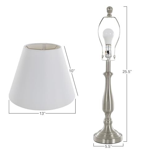 Transform your living space instantly with the stylish form and function of this Three-Piece Table and Floor Lamp Set by . Featuring two lamps for living room end tables and one floor lamp ideal for brightening dark corners, this matching lamps set boasts easy-to-match white shades and a sleek brushed finish for simple blending with transitional furnishings. This three-piece lamp set includes the three LED bulbs required for operation, ensuring convenient use right out of the package and energy-efficient living room or bedroom lighting. IMPORTANT: is committed to providing the consumer with the absolute best price and value on our entire line of products. NOTE: This is an exclusive product of and ONLY 2-Piece Table and Floor Lamps Sets by are GUARANTEED to be genuine. Avoid buying counterfeit products and transacting with unauthorized sellers. 3-PIECE LAMP SET - Incorporate these lamps for living room end tables with both traditional and modern decor. The sleek transitional styling helps this three-piece lamp set blend beautifully with classic and contemporary furnishings alike. COORDINATED LOOK - Tie your living room or bedroom decor together with a coordinated lighting scheme. This three-piece table and floor lamp set features a matching design to give your living space a polished, attractive appearance. EASY MATCHING - Pair this three-piece table and floor lamp set with virtually any palette for easy decorating. The white drum shades and brushed steel finish complement color schemes from basic and pastel to vivid and rich for fuss-free decor matching. ENERGY EFFICIENT - Enjoy bright lighting with low energy costs by using this three-piece table and floor lamp set. This three-way rotary switch lamp set includes three replaceable LED bulbs that last longer and use less energy than standard bulbs. PRODUCT DETAILS - Materials: Fabric Shades and Steel Lamp Bodies. Dimensions: Table Lamps: (W) 13" x (H) 25.5" x 5.5" Diameter Base and (L) 60" Cord; Floor Lamp: (W) 13" x (H) 59.5" x 10" Diameter Base and (L) 76" Cord. Color: White and Brushed Steel.