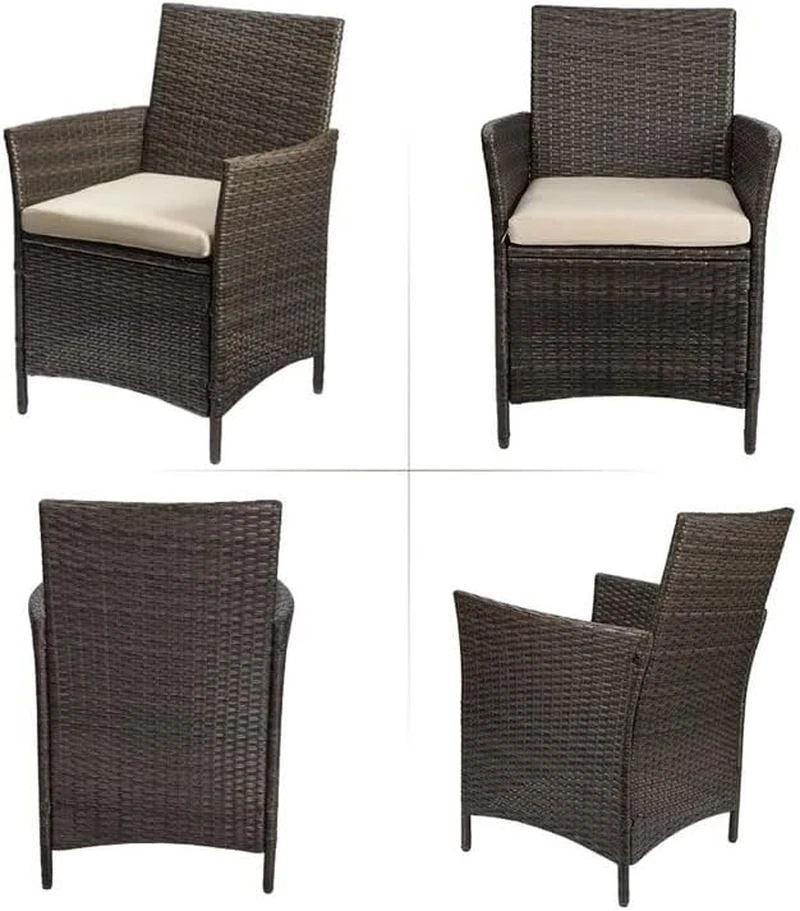 Practical & Stylish: The patio sets’ woven rattan elements and curved edges design create a simple, stylish appearance,which is a good choice for patio, porch, backyard, poolside, garden and other suitable space in your home.The 3 pieces patio furniture sets provides a relaxing area while decorating your outdoor space. Sturdy & Durable: Compared to other patio chairs set of 2, the outdoor patio furniture sets use compact woven PE rattan and thick steel frames to ensure strength and long life. The sturdy construction and durable rattan are strong enough to withstand rain and wind for long periods of use. Pretty Comfortable: The cushions on the patio chair set are made from a waterproof soft upholstery fabric that is easy to clean and maintain.Two thickened high-density soft sponge cushions also provide the comfort you need. High Quality Material: The powder coated steel frames are rust resistant and the high quality weather resistant PE rattan won't fade. Each patio furniture seat can support up to 330 pounds.The table in the patio set is made of high quality tempered glass, which is strong yet lightweight and easy to clean. Easy to Assemble: The 3 pieces patio furniture sets is easy to install.To ensure that you can install this outdoor furniture quickly, it comes with full assembly tools and instructions.The Patio Set is great for a small garden or balcony and provides a relaxing place to enjoy time outdoors. Are you looking for a suitable outdoor patio chairs set of 2 for you and your family, relatives and friends? Maybe JUMMICO patio furniture set is a good choice for you. Benefit from the 3 pieces patio furniture set close to the natural rattan elements and simple & stylish design, this outdoor patio furniture set can be well integrated into the natural environment, adding a quaint, natural flavor to your garden. JUMMICO patio furniture using premium rattan compact weave covered in a sturdy steel frame surface to resist high temperature and humid weather conditions, to ensure that this outdoor furniture will not fade, cracking and other quality issues after a long period of time using. Outdoor patio chairs dimensions: 21.5x19.5X33.5 inches. Patio Table dimensions: 15.75x15.75x17.75 inches. Features: Benefit from the simple and stylish appearance design,the patio furniture set is suitable for use in a variety of outdoor scenarios, such as patios, porches, decks, pools, lawns, gardens. The patio furniture Set's cushions use a soft high-density sponge to provide a comfortably cushioned seat that is spacious and comfortable for 2 people. The patio chair covers are removable for easy cleaning and maintenance. The patio furniture set's tabletop is made of high quality tempered glass for drinks, food and other beautiful decorations. And the premium rattan material in the outdoor wicker chair is suitable for all kinds of outdoor environments. With installation tools and instructions, thoughtful after-sales service. Specifications: Material: PE rattan, steel Patio chairs Dimensions: 21.5”(L)x19.5”(W)x33.5” (H) Table Dimensions: 15.75”(L)x15.75”(W)x17.75”(H) Lawn chairs weight capacity: 330lbs Table weight capacity: 100lbs Package includes: 2 patio chairs 1 patio table 2 soft sponge cushions Complete installation tools Assembly instructions