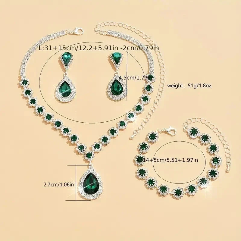 Title 3-Piece Set: Elegant Bridal Jewelry Set - Rhinestone-Encrusted Earrings, PRODUCT DESCRIPTION Enhance your bridal look with our exquisite 3-Piece Set: Elegant Bridal Jewelry Set - Rhinestone-Encrusted Earrings, Necklace & Bracelet Combo. Designed to add a touch of sophistication and sparkle, this stunning set is the perfect accessory for the modern bride seeking timeless elegance on her special day. Each piece in this carefully crafted jewelry set features luminous rhinestones meticulously encrusted onto high-quality copper, finished with a sleek silver plating. The *synthetic stones* mimic the brilliance of genuine jewels, ensuring a luxurious appearance without the high cost. The cohesive design of the earrings, necklace, and bracelet creates a harmonious and glamorous look that complements any wedding gown or formal attire. Key features and benefits include: Elegant Design: Sophisticated rhinestone details for a radiant bridal look Versatile Set: Perfect for weddings, engagement parties, and special occasions Quality Craftsmanship: Expertly designed with durable copper and shimmering rhinestones Comfort Fit: Lightweight pieces for all-day wear with a comfortable fit Hypoallergenic Material: Safe for sensitive skin, ensuring worry-free wear Whether you're aiming for classic or contemporary styles, this jewelry set is designed to elevate your ensemble with a touch of sparkle and grace. Make your wedding day unforgettable—add this stunning 3-piece bridal jewelry set to your cart today and shine radiantly on your special day! Powered by
