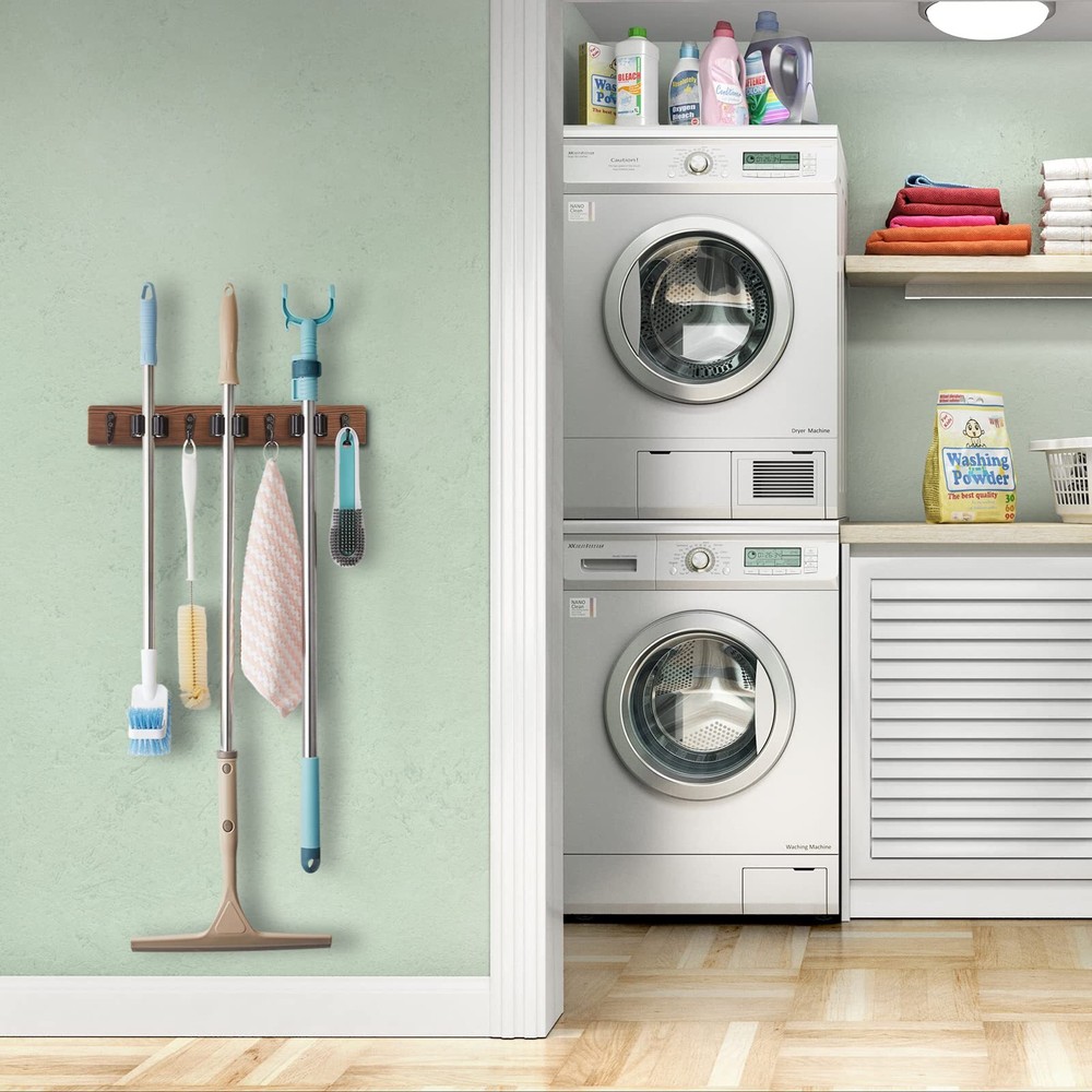 Mop Broom Holder Wall Mount with 3 Slots & 4 Hooks - Wood Broom Mop Hanger for Pantry Kitchen Organization - Garden Tool Organizer for Closet Laundry Room - for Rustic Farmhouse Kitchen Decor ORGANIZE AND SAVE SPACE - The wall-mounted mop and broom holder offers easy access to store and grab brooms, dustpans, and mops while freeing up closet space. Keep your cleaning tools organized and within reach. INDOORS OR OUTDOORS - Hang your cleaning tools at any height to prevent congestion or overcrowding on the floor. Perfect for utilizing unused space behind doors or along walls in the garage, laundry room, closet, or mudroom. EASY TO HANG AND USE - Each broom organizer wall mount has 3 rubber roller clips and 4 hooks, which securely hold tools of various sizes and handles. You won't have to worry about falling tools during use. ADD COUNTRY CHARM - Rustic wood combined with industrial stainless steel clips create a modern country look that complements any decor. This functional broom holder wall mount makes beautiful wall decor for your kitchen, garage, or laundry room. EASY INSTALLATION - You can easily mount this broom holder on most flat wall surfaces using the included mounting hardware (including drywall anchors and standard screws). Note: Please be aware that the distance between the mounting holes is 28.5cm/11.2 inches. Mop and broom holder wall mount for storage Shipping We offer FREE shipping on all orders! We ship within Three business days of payment, usually sooner. We use a selection of shipping services such as UPS, FedEx, USPS etc. We only ship to the lower 48 states, no APO/FPO addresses or PO Boxes allowed. Local pickups and combined shipping options are not provided at this time. Return You can return a product for up to 30 days from the date you purchased it. Any product you return must be in the same condition you received it and in the original packaging. Please keep the receipt. Payment We accept payment by any of the following methods: PayPal Please pay as soon as possible after winning an auction, as that will allow us to post your item to you sooner! Feedback Customer satisfaction is very important to us. If you have any problem with your order, please contact us and we will do our best to make you satisfied. Contact Us If you have any queries, please contact us via ebay. We usually respond within 24 hours on weekdays. Please visit our eBay store to check out other items for sale! Thank you for shopping at our store.