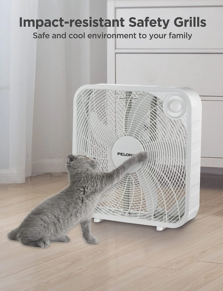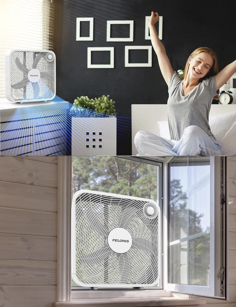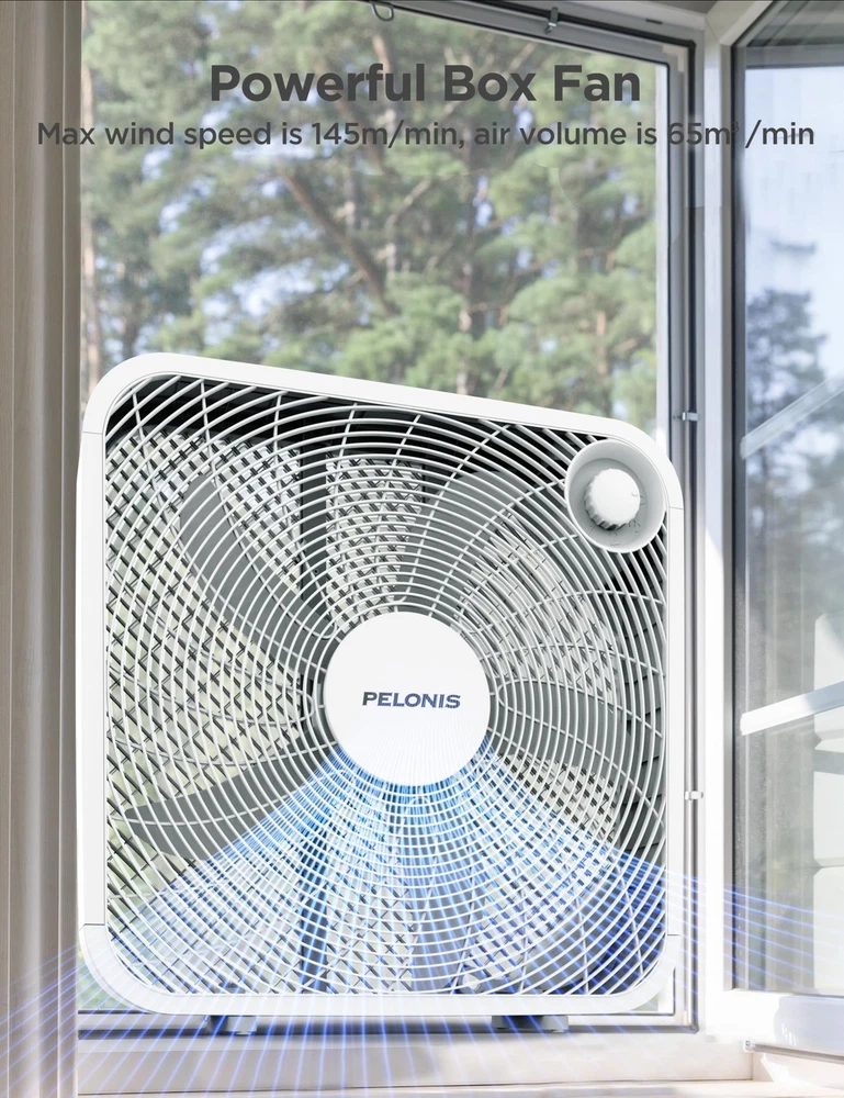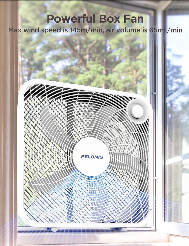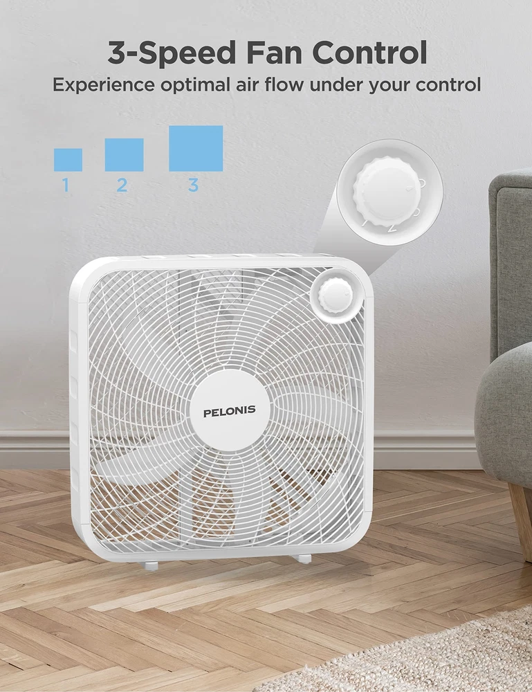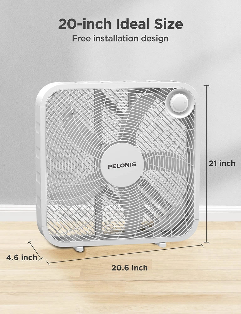 The 20 Inch Floor Fan is basic but not simple. With three speed settings, it could easily accommodate your cooling needs. It is compact,quiet, affordable and the glossy black finish will match any home style. 3-SPEED FAN CONTROL: The fan offers three customizable speed settings, allowing you to easily adjust the airflow to match your comfort level. Whether you prefer a gentle breeze or a powerful gust, this fan delivers personalized comfort with ease. POWEFUL COOLNESS: TThe 21-inch, 4-blade design provides a strong airflow of 2295.45 cubic feet per minute and an air velocity of 478 feet per minute, ensuring a refreshing experience throughout your space. ENERGY EFFICIENT DESIGN: This 3-speed box fan with 55W consumption helps save money and reduce energy consumption by enhancing air conditioners with powerful air circulation. EASY TO HANDLE: Weighing only 1.52 pounds, the fan is incredibly easy to carry and transport, making it the ideal choice for bedroom, living room and office. SLEEK AND SEAMLESS DESIGN: This fan's modern, neutral design fits seamlessly into any space, enhancing your space with both style and functionality. DURABLE AND RELIABLE: Built with a robust copper motor and backed by a 1-year manufacturer's warranty, guarantees long-lasting performance and peace of mind.