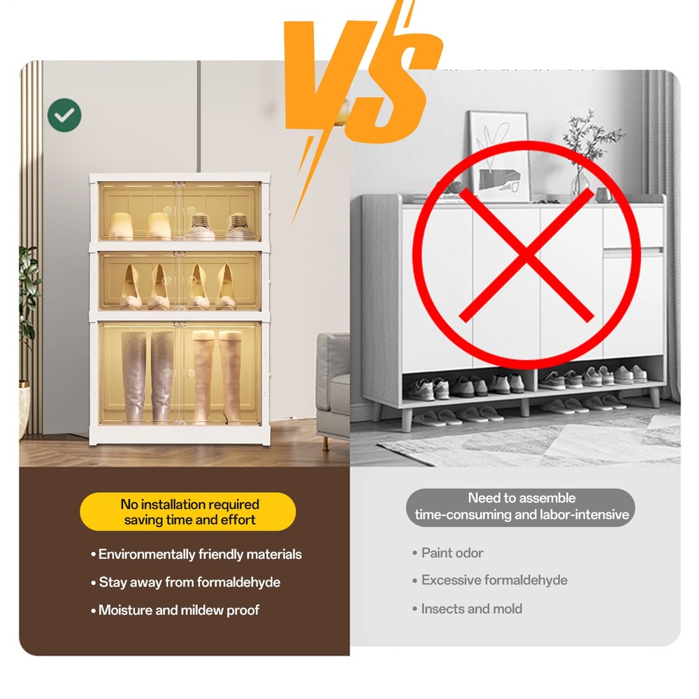 Store category Sign Up Now ! You may also like Product Description Bullet Points: Time-Saving Organization: Experience the convenience of a stackable shoe rack; quick to assemble, no tools needed, and folds away for easy storage—optimizing your space smartly. Versatile Storage Solution: With the ability to hold 6 pairs of shoes on multi-tiered racks and accommodate high boots, our foldable shoe cabinet boasts a 3-layer design that can store most types of men's and women's shoes, making organizing your shoe collection effortless. Improved Stability: Made with high-quality PP+PET material, this foldable shoe cabinet ensures your door stays protected while reducing dust. Its incredible suction power keeps it stable, making it a perfect addition to any home. Instantly Locate Your Shoes: Quickly and easily find the shoes you need with our foldable shoe cabinet; the light brown transparent door makes it easy to identify and its effortless maintenance makes it a breeze to clean. No more fussing and searching for your shoes. Multi-Purpose Storage: Optimally designed for organization, this foldable shoe cabinet enhances your storage room, garage, living room, and bedroom, adapting effortlessly to various scenes. Organize your shoes with ease using our foldable shoe cabinet. High boot storage design and super suction power to keep shoes in place. Easily folded for storage in the garage. Features a sleek, light brown transparent door for stylish storage. Specification: Accommodate up to 6 pairs of multi-layer shoe racks. Product Name: folding shoe rack. Product size: about 44x34.5x66cm/17.32x13.58x25.98 inches. Packing List: 1* folding shoe cabinet with doors Note: Due to different lighting and screen settings, the item color may be slightly different from the picture. Due to different manual measurements, please allow a 1-2cm difference in size. Payment Delivery details Terms of sales About us Feedback & DSRs Payment Before you palce an order, please kindly make sure that you have a paypal account. We accept PAYPAL payment only. Payment should be completed within 2 days after auction closed, or unpaid dispute will be filed for an closing auction. An unpaid case will be filled after 4 days. Delivery details We ship to your eBay address. Each package will be shipped to US by UPS Regular Parcel with tracking number. Please check your shipping address carefully before checkout, it can't be changed if order completed. All items will be shipped within 1-2 business day upon receipt of payment.Orders placed on weekend will be shipped within 3 days. If you do not receive your item in 7-10 business days.please contact us immediately for further assistance. We will be responsible for any damages or losses incurred in the shipping process. About us We maintain high standards of excellence FIVE STAR and strive for 100% customer satisfaction! Positive Feedback is very important to us. We hope that you contact us immediately Before you give us neutral or negative feedback, so that we can satisfactorily address your concerns. We promise to offer the lowest price and high quality produce. Our working time: From Monday to Friday(9:30 am to 18:00pm), we don't working on holidays ,hope you can understand and know that , thank you. Please always talk to us via ebay Message. We appreciate your business and look forward to growing our e-Bay sales with satisfied customers. Feedback Contact us If you have any questions, please feel free to contact with us by ebay Message during our business hours ( 9:30a.m. to 5:30 p.m.), or email us through eBay, we will try our best to help you to resolve it. For any presale or after-sale questions,please do feel free to email us! Due to the time difference, each email will be replied within 1 working day,and weekend will be delayed a bit. Feedback