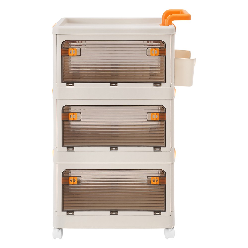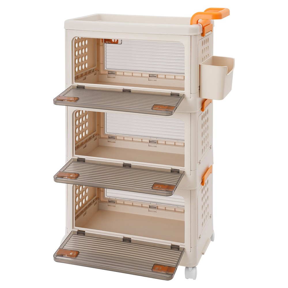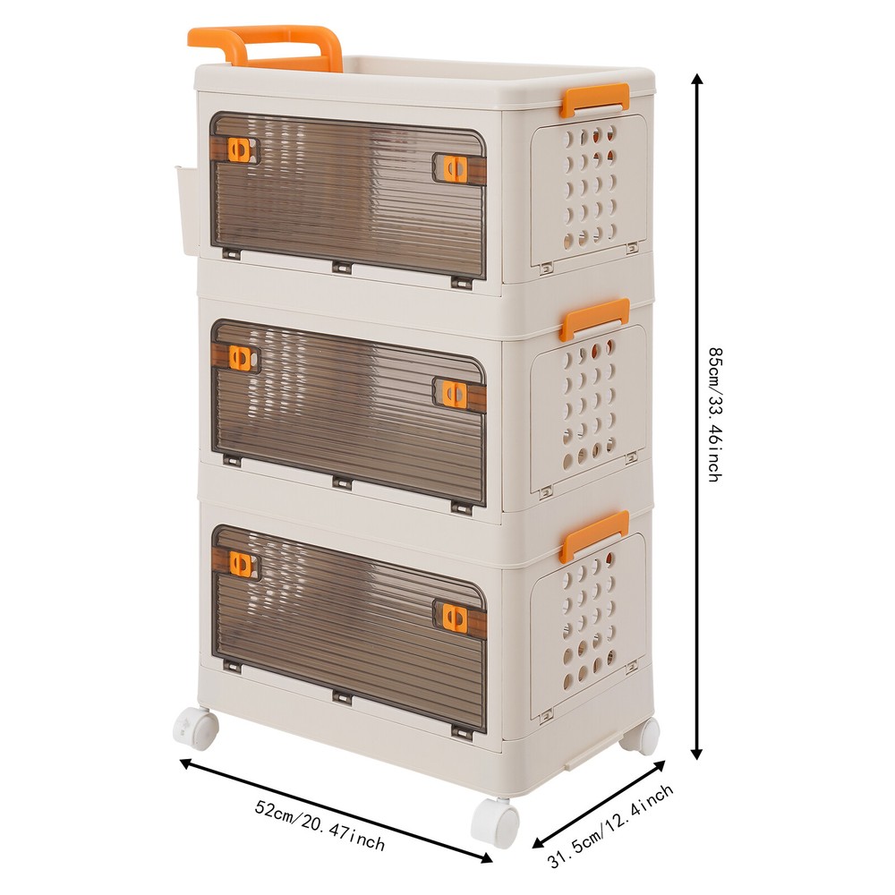 Specifications Material: PP Color: White Style: Modern Shape: Rectangle Mounting Type: Floor Standing Assembly Required: Yes Each Tier Load Capacity: About 40kg/88.18lbs Number of Tiers: 3 Number of Universal Wheels: 4(Two With Brakes) Product Size: 52*31.5*85cm/20.47*12.4*33.46in Package Size: 46*32*33cm/18.11*12.6*12.99in Gross Weight: 5.1kg/11.24lbs Net Weight: 4.85kg/10.69lbs Package Included 1* 3-tier Storage Bin 1* Small Storage Basket 4* Universal Wheels 3 Tiers Foldable Storage Cabinet Movable Storage Box Collapsible Storage Bin Specifications Material: PP Color: White Style: Modern Shape: Rectangle Mounting Type: Floor Standing Assembly Required: Yes Each Tier Load Capacity: About 40kg/88.18lbs Number of Tiers: 3 Number of Universal Wheels: 4(Two With Brakes) Product Size: 52*31.5*85cm/20.47*12.4*33.46in Package Size: 46*32*33cm/18.11*12.6*12.99in Gross Weight: 5.1kg/11.24lbs Net Weight: 4.85kg/10.69lbs Package Included 1* 3-tier Storage Bin 1* Small Storage Basket 4* Universal Wheels Description To say goodbye to the dirty room and create a clean and high-value room, we designed this 3-tier storage bin for you. This 3-tier storage can effectively improve space utilization. It can be used to store clothes, children's toys, pet supplies, kitchen condiments, bathroom supplies, etc., which is economical and affordable, so buy and try it! Key Features Selected Material : High-class PP makes this product hard, environmentally friendly , odorless , dustproof , waterproof , and not easy to deform so that it can be used for a long time. Ample Storage Capacity : The 3-tier design provides plenty of space to organize and store a variety of items, such as clothing or household essentials, to keep your home tidy. The side basket can also hold keys and other small items, and the top platform can hold mugs, table lamps, vases, and more. It also helps children develop good organizing and storage habits from a young age. Thoughtful Design: The semi-clear door allows you to view the contents without opening the door, and the ventilation holes on the side effectively prevent odors and keep the interior fresh and dry. Easy to Access: The four-side door opening design and removable top allow you to access items from different angles. Strong Load-Bearing Capacity: The rectangular structure and sturdy material allow each tier to hold about 88.18 lbs, so you can use it with confidence. Space Saving : Its multi-tier design uses vertical space, making it easy to create storage space in just a small corner. Moreover, it can be folded into a smaller size when not in use, allowing for efficient storage and saving valuable space in your home or garage. Easy to Move&Fix: The top handle and 4 universal wheels (two with brakes) make this product easy to push and pull, move, and fix, which is very energy-saving. Simple Installation : Simple construction and complete accessories allow you to assemble it in a short time, saving time and effort. Nice Gift : Thanks to its large capacity and beautiful appearance, you can give this product as a housewarming gift or holiday gift to your family, colleagues, or friends so that they can enjoy a more convenient life. Simple Maintenance : Thanks to its smooth surface and simple construction, you can easily clean it with a soft cloth (not included). Details Smooth Edges : The smooth and burr-free edges not only take better care of your hands and clothes but also improve the aesthetics of the product. Raised Guardrail: The raised top design prevents items from falling. Buckle Design : The side buckle design ensures a secure connection between tiers, making it hard to detach. Application This product is suitable for a variety of environments such as bedrooms, study rooms, toy rooms, and offices. It's ideal for organizing clothing, toys, books, craft supplies, office supplies, snacks, and other items. Notes Please carefully check the dimensions before purchasing. Please use this product within the load-bearing range. Please note that this product does not contain clothes, toys, snacks, and other items. Please allow the slight color difference caused by the shooting light and 1-3 cm error due to manual measurement, and make sure you do not mind before ordering. Payment Delivery details Terms of sales About us Contact us Payment We accept ebay payment 。 Fees such as import duties, taxes are not included in the item price or shipping costs. These charges are the buyer's responsibility. Delivery details Shipping: 2-9 working days to: USA Terms of sales We maintain high standards of excellence and strive for hundred percent customer satisfaction. Feedback is very important to us. We hope that you contact us immediately before you give neutral or negative feedback, so that we can address your concerns. It is impossible to address issues if we do not know about them! About us Your satis faction is our ultimate goal. We work hard to earn your trust and future business. Our certified technicians have tested each item before shipping. The unit comes with 1 year limited warranty on all manufacturing defects. a) If you receive a defective item, you may return it or ask for a discount. Please contact us within 14 days after you receive the package. b) What you returned must be intact and in its original packaging as re? u. Customer is responsible for shipping costs of the returned item. c) We will cover the cost of shipping back t with the shipping rate indicated in the registration page. We will send you a new unit or refund the full payment you paid. Thank you. Contact us Business Hour Business Hour: Monday To Friday: 8:30 AM to 5:00 PM (Beijing China time) Due to time zones, our reply to your questions may not be immediately. But within above working time, we will reply your email within 24 hours. If it's non-workdays, please kindly be patient and wait till Monday. Please contact us with ebay message. Please feel free to contact us if you have any questions. Monday To Friday: 8:30 AM 