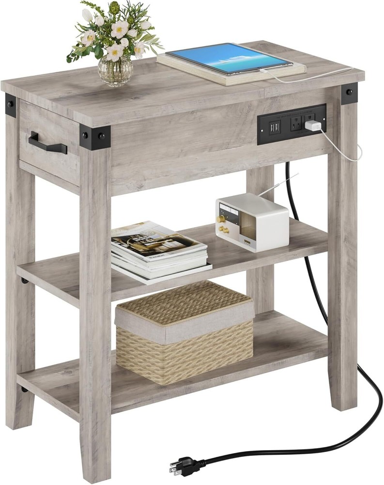 About this item Versatile End Table: Designed for narrow spaces. Side tables living room with flip-top drawer and two storage shelves. It can meet all your daily needs for home storage and display. The small side table is perfect for the living room, bedroom, and some small spaces in the middle of the sofa. Size: 23.5”L x 12.5”W x 24.5”H Bedside Table with Outlets: The small table comes with a charging station that has 2 standard 120V AC outlets, 2 USB-A ports, and a 6.5-foot extension cord. The end table charging station is designed on your left vertical side, fire-resistance PC shell, which is safer to use. you don't have to worry about coffee, water, etc. spilling and causing electric shock. Drawer Storage Design: The flip top of the narrow side table drawer can be opened separately without affecting the use of the other half of the tabletop. The drawer with metal handle can also be pulled out for separate storage without wasting the original internal space. Sturdy & Stable: The side tables bedroom is made of high-quality MDF engineered wood. The side table desktop can bear 140 pounds, and each storage shelf can bear 25 pounds. The thick tabletop and sturdy legs provide excellent stability and ensure a long service life. The load-bearing board of the storage shelves are sturdy and not easy to deform after long-term use. Easy to Assembly: This end tables living room comes with numbered parts and clear instructions, as well as precise mounting holes, and can be assembled by 1-2 people in about 20 minutes. Any quality problem, assemble problem or missing parts please don't hesitate to contact us first. We will reply to you within 24hours and give you the best solution. Product Description Why choose the farmhouse end table ? Upgraded farmhouse end table paying attention to the quality of products, and aims to make your entertainment stand have better performance. The selected high quality MDF+PB engineered wood material, with exquisite workmanship and strong structure, is the choice for grey side table. High-grade Engineered Wood Waterproof, wear-resistant, excellent stability and durability, cleaning and maintaining it is a breeze. Charging Station Features 2 standard 120VAC outlets, 2 USB ports, allows you to charge multiple electronic devices. Flap Tabletop The flip top can be opened separately without affecting the use of the other half of the tabletop. Payment Delivery details Terms of sales About us Contact us Payment We accept payment either via PayPal or any of the following credit cards; Visa, MasterCard, Discover, and American Express. Delivery details 1. We will delivery out at the handing time when we receive the payment. 2. The delivery time is 3-5 business days to US by usually time.The parcel maybe delay 1-2day of the weekend.Due to the bad weather,Holidays,Hot Season ect.the parcel maybe delay,If you have any problems,mssage us,we will try our best to solve it. 3. We ship to your eBay address. Please make sure your eBay address is correct before you pay. 4. If you want to change the shipping address,message us before our send out. Terms of sales If you are not satisfied with the item for any reason, please do not quick to leave negative/neutral feedback even open request and case without any communication with us. We devote ourselves making EVERY CUSTOMER in 100% Satisfactory and resolve any problem. Thank you for your understanding and recognition,we are always leave positive feedback to all our customers. About Reply: All replies will be sent to your email box, if you do not get response within 24 hours (Sat. & Sun. excluded) please check your eBay My Messages in case that our emails will be filtered automatically by your settings. About us automobilee-01 is a brand new store but we are one of North America’s top online suppliers of specialized, high-quality aftermarket online retailers and suppliers, committed to developing new markets. We primarily offers tool sets, auto parts, home goods, etc..With over 20 years of product selection and manufacturing experience, we delivers unparalleled quality, value, service and satisfaction. Our highly-trained, professional staff offer in-depth knowledge and personalized assistance for customers worldwide. Providing our customers with a simple, hassle-free experience with best-in-class customer service is more than a goal. Contact us Any problem please rest assure to contact us by eBay message first. We will reply you as soon as we can. We will deal with it within 24hs on working days. Brand Unbranded Item Length 23.6 in Item Width 12.5 in Item Height 24.4 in Type End & Side Tables Shape Rectangular Style Contemporary/Modern Color Gray MPN Does not apply Indoor/Outdoor Indoor Material MDF/Chipboard Care Instructions Easy Care Department Adults Item Weight 28.7 Pounds Features Storage Shelves, Drawers, with Charging Station Room Bedroom, Dining Room, Home Office/Study, Living Room Number of Drawers 1 Tabletop Material Wood Handle Material Metal Manufacturer Warranty 5 Years