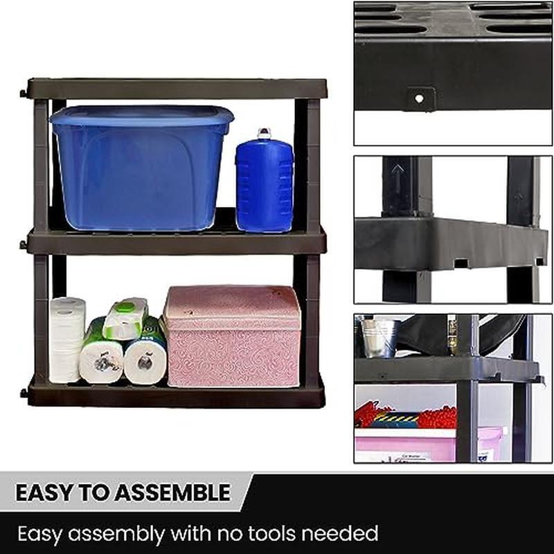 3-Tier Plastic Storage Shelf for Garage Organizing Lightweight Durable Rack Unit