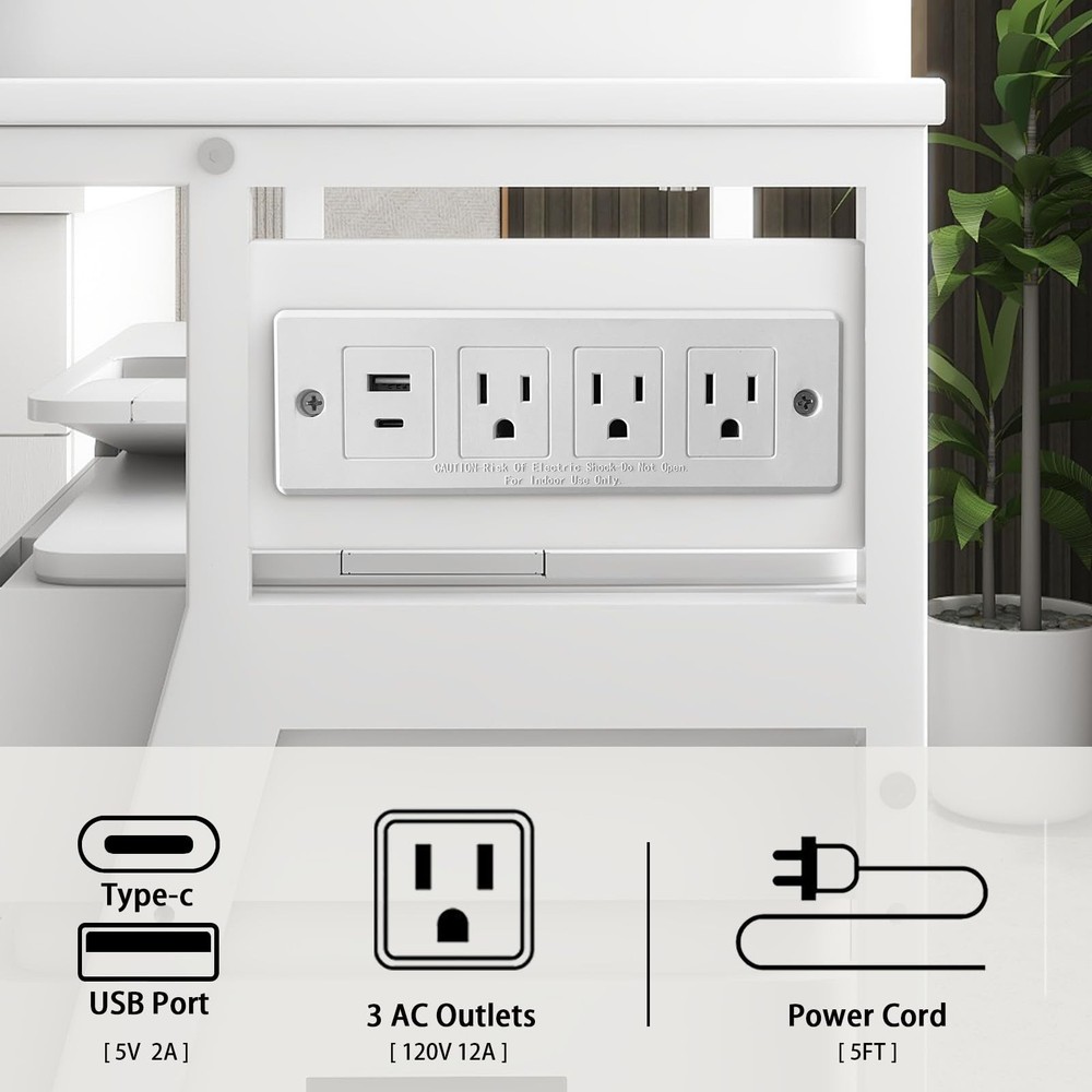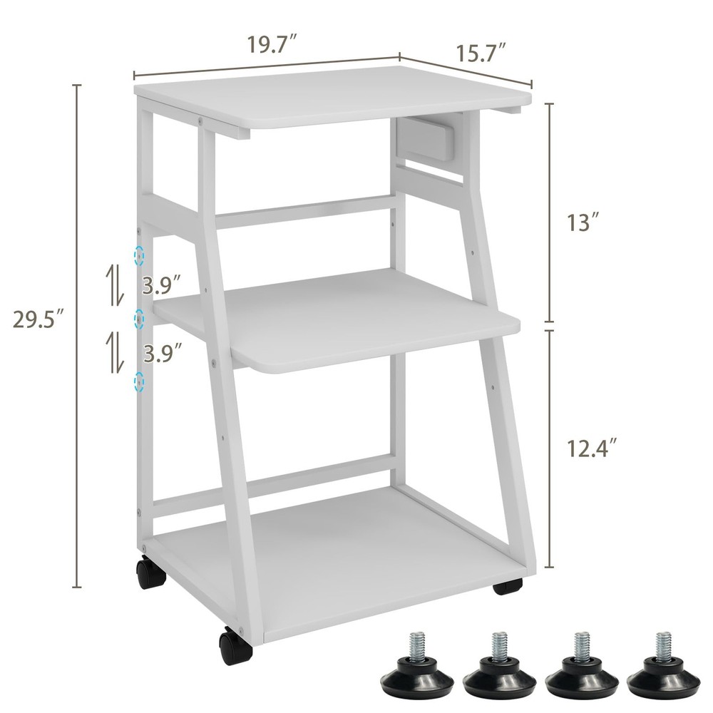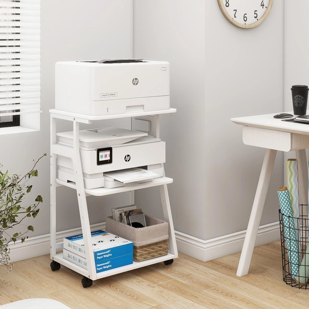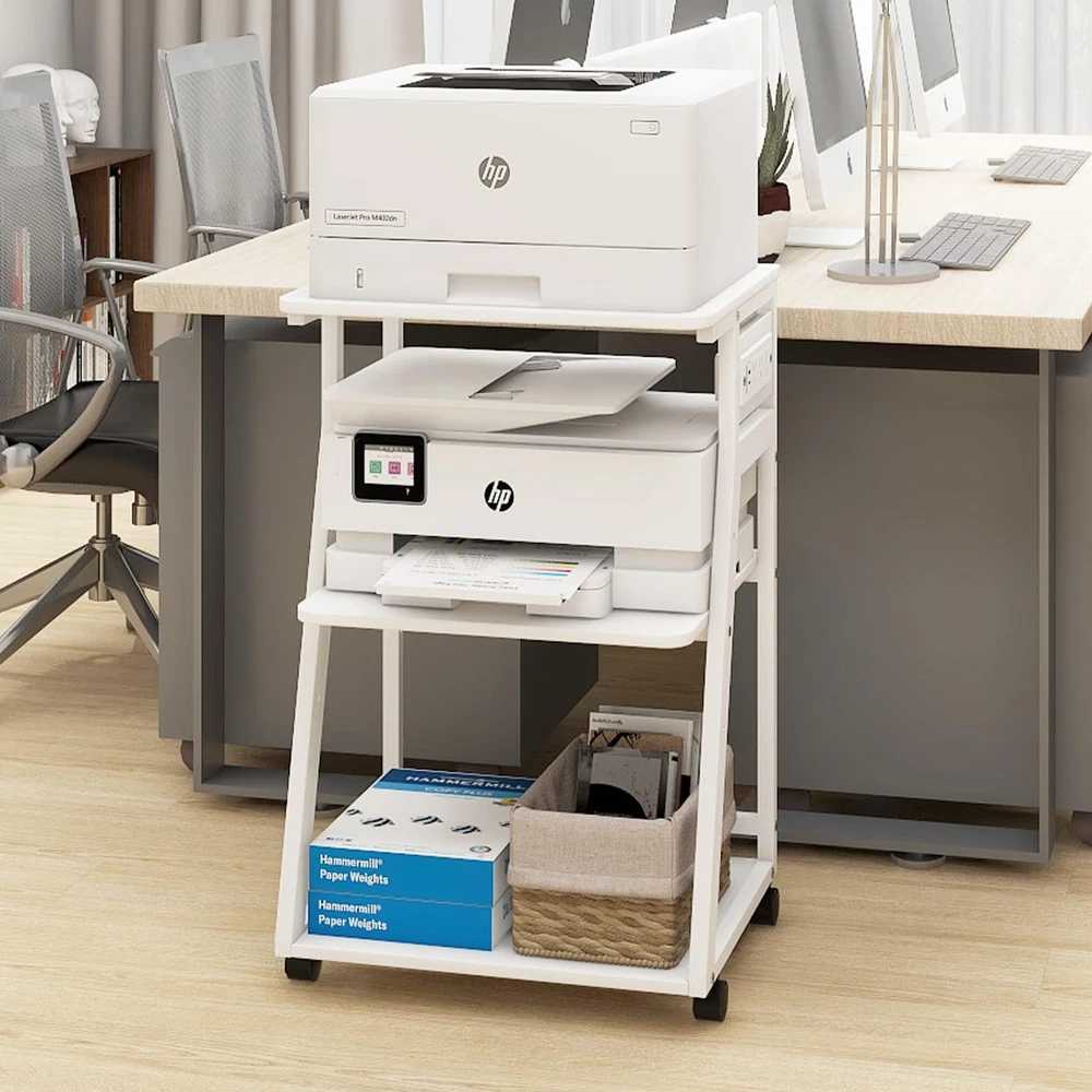 Home3-Tier Printer Stand with Charging Station, Rolling Cart for Home Office