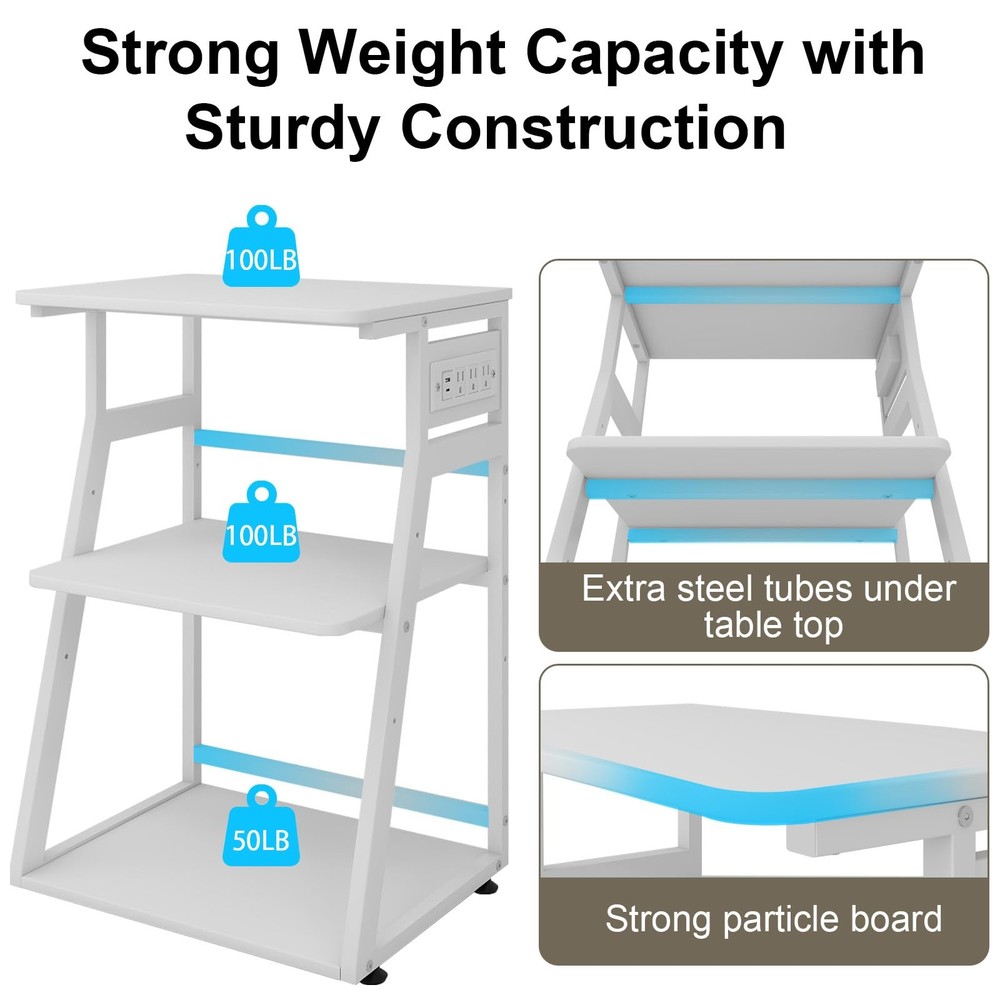3-Tier Printer Stand with Charging Station, Rolling Cart for Home Office